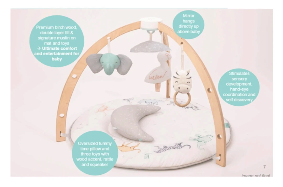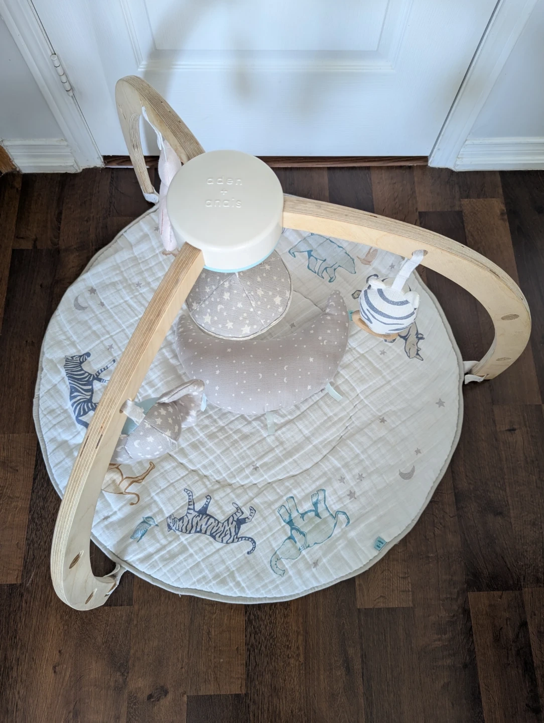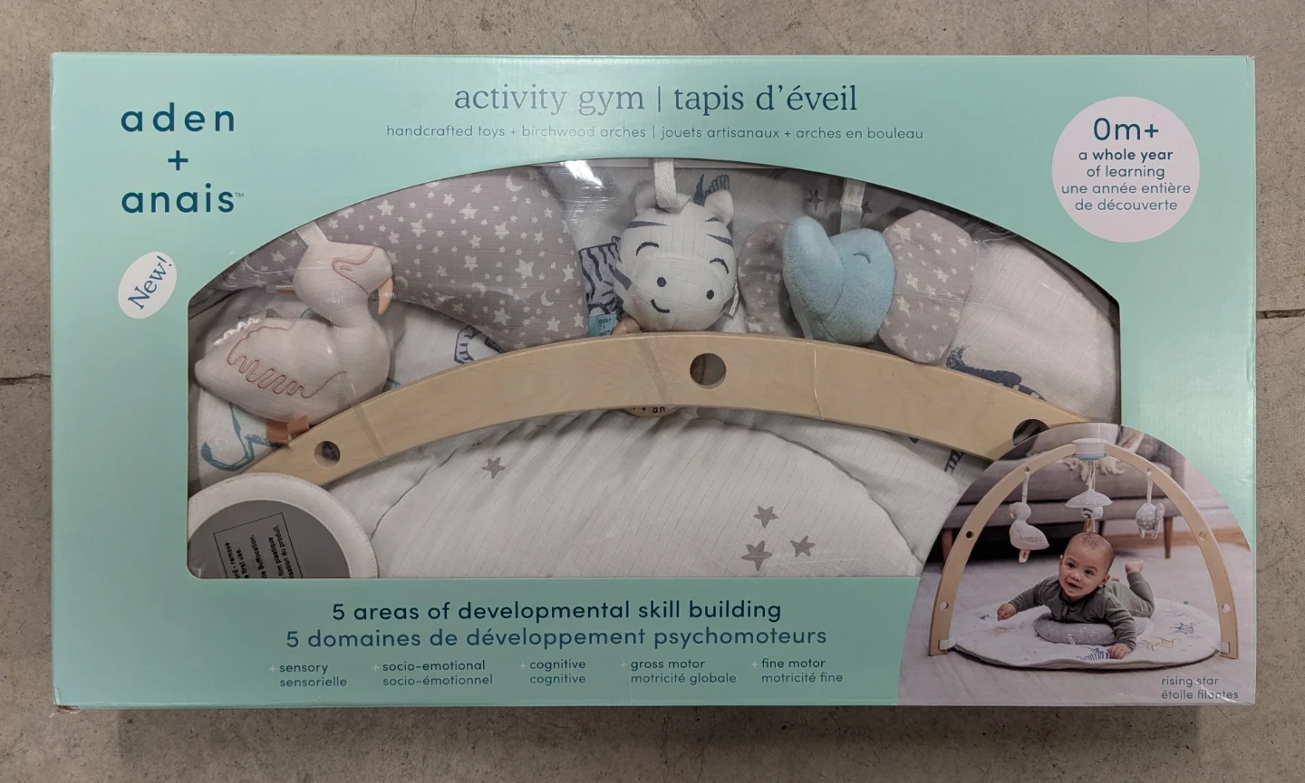 This brand new Aden + Anais activity gym offers a stimulating and safe environment for your baby's development, featuring handcrafted toys and a soft, padded mat. This activity gym is designed to engage your baby’s senses and encourage motor skill development.