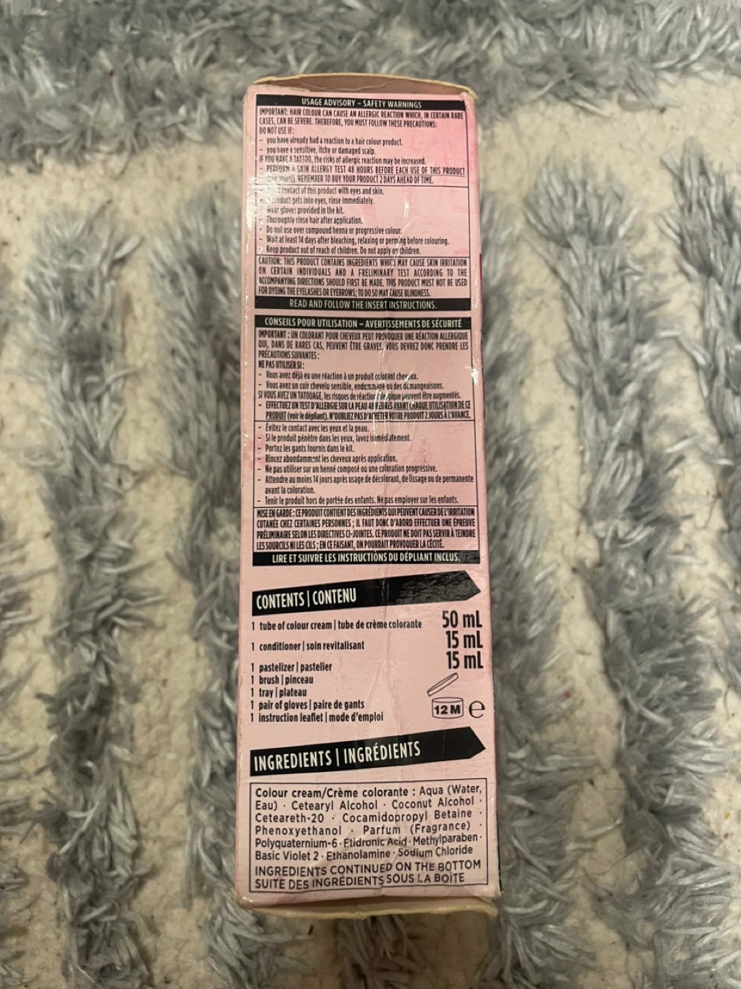 Create bold or pastel hair colours with this semi-permanent hair dye. It includes 1 tube of colour cream, 1 conditioner, 1 pastelizer, 1 tray, 1 pair of gloves, and instruction leaflet. This kit offers multi-application.