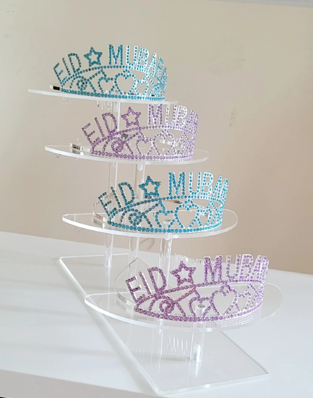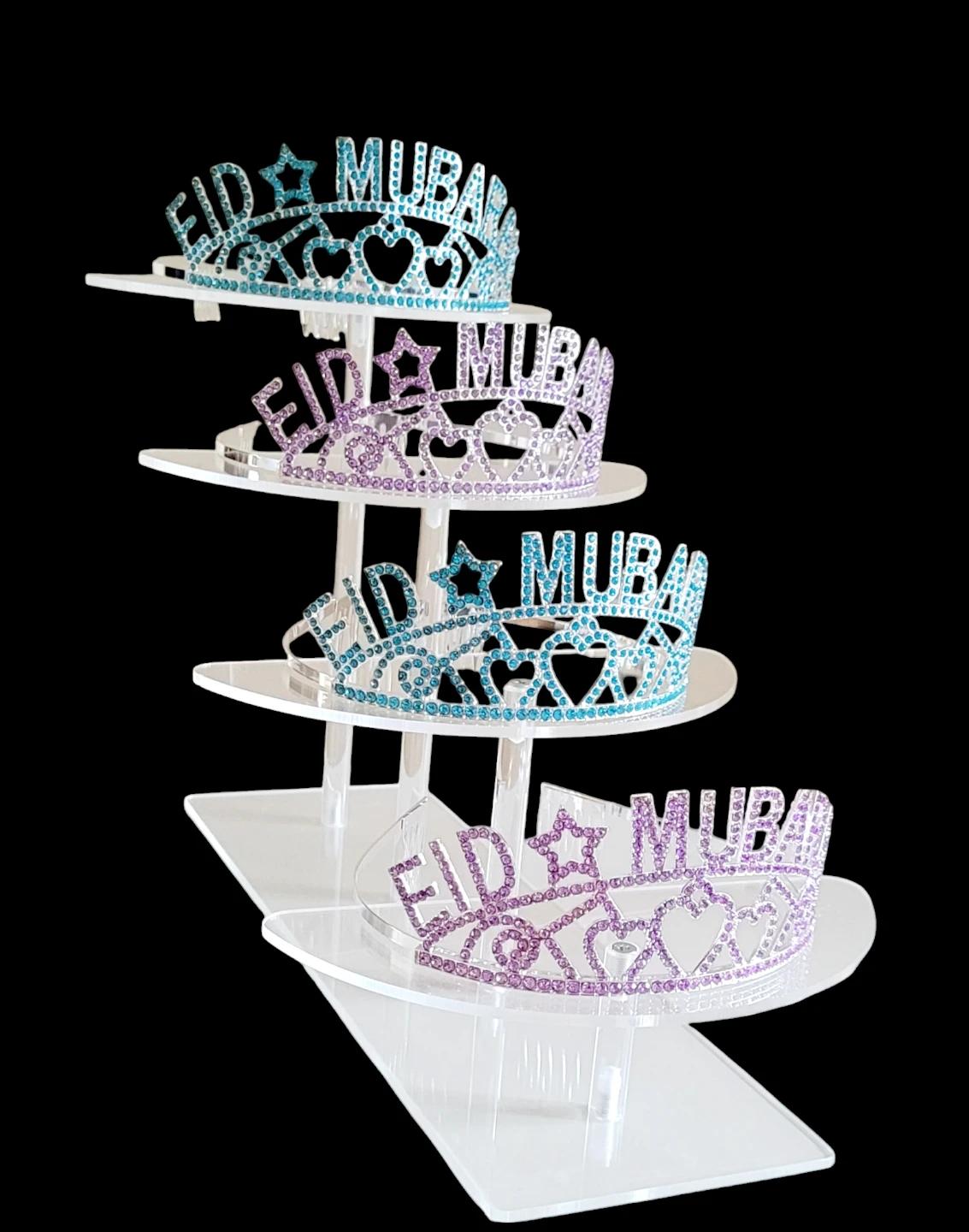These festive Eid Mubarak crowns are perfect for celebrating. They come in assorted bright colours with Rhinestones details. Great for adding a fun touch to Eid parties!