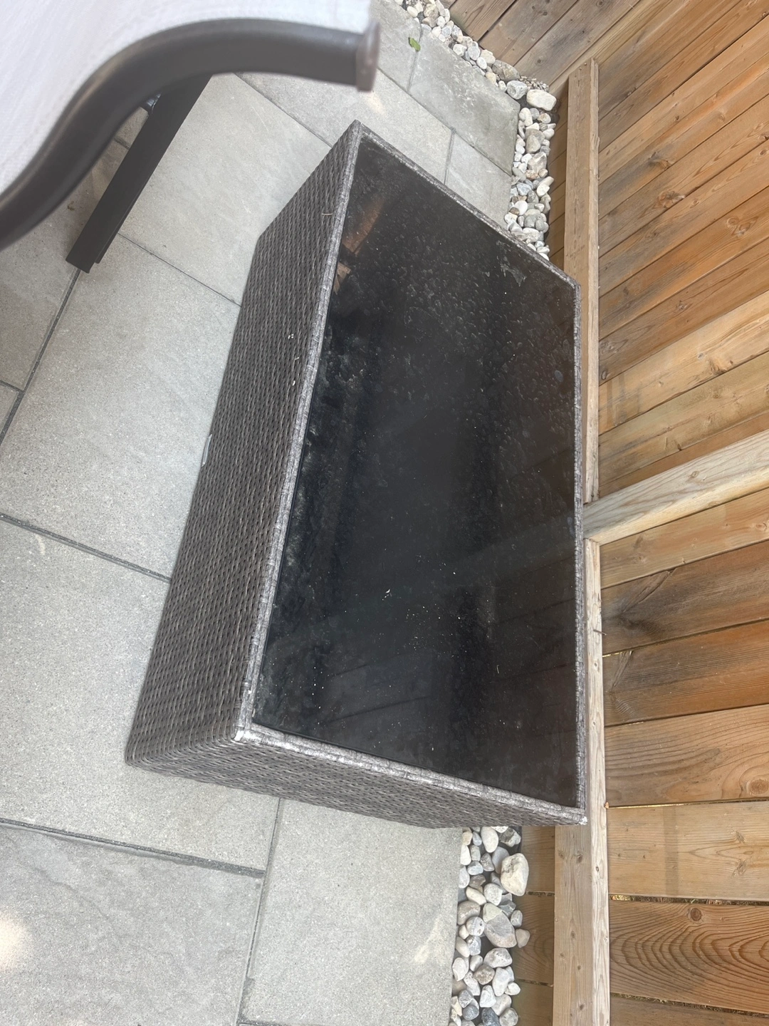 Selling a wicker patio coffee table with a glass top. It's a great addition to any outdoor seating area. The wicker gives it a nice, natural look, and the glass top is easy to clean. Perfect for enjoying your morning coffee or evening drinks on the patio!
