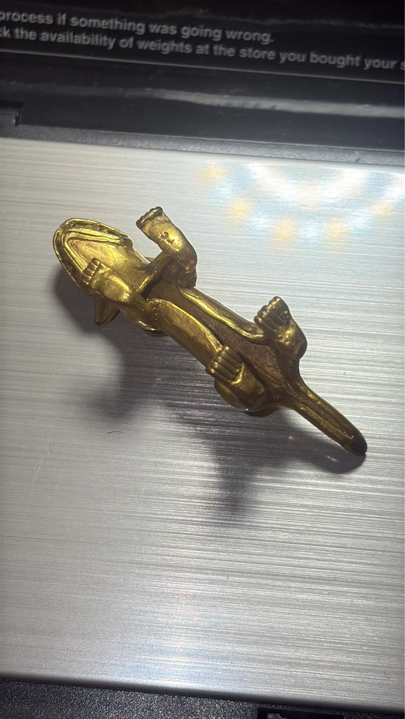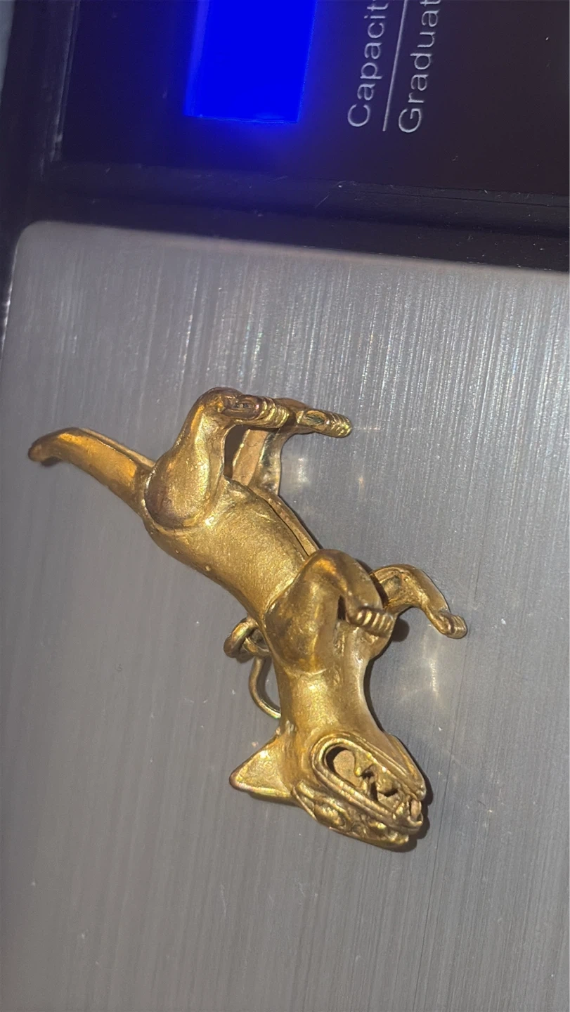 This is a decorative gold figurine of an animal. It weighs 9.4g on the scale. It's a unique piece that would make a great addition to a collection. It has 24 stamped underneath - from my parents long closed antiques shop but found amongst my fathers small box of gold and silver items