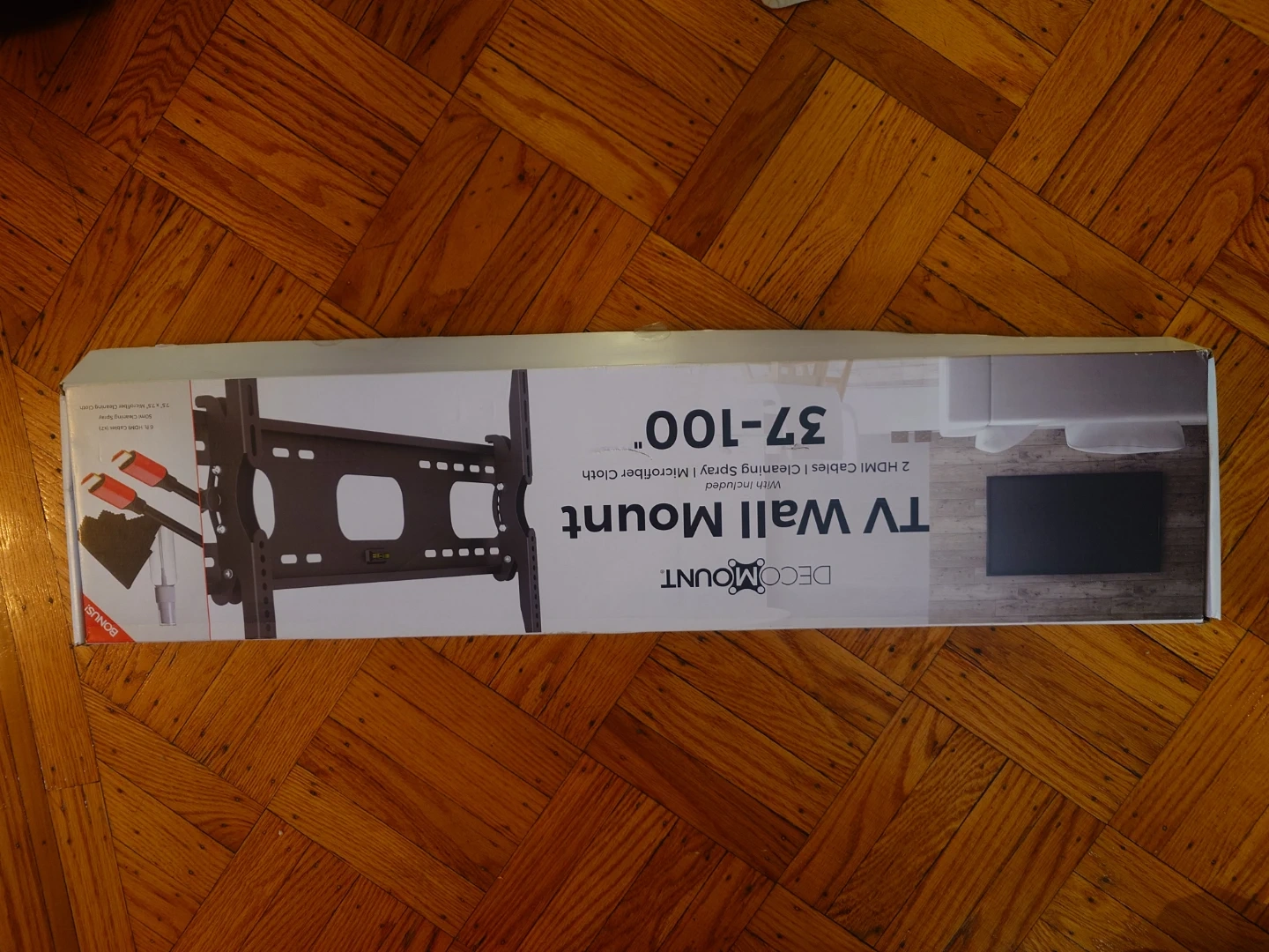 This is a DECO MOUNT TV Wall Mount for screens 37" to 100". It includes 2 HDMI cables, a cleaning spray, and a microfiber cloth. The mount is designed for versatile TV placement.