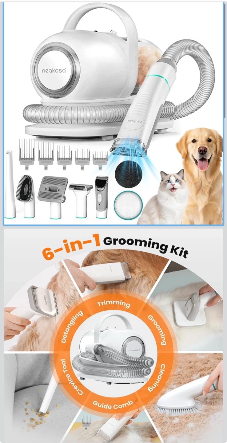 Neakasa P1 Pro Pet Grooming Kit & Vacuum Suction 99% Pet Hair, Professional Grooming Clippers with 5 Proven Grooming Tools for Dogs Cats and Other Animals