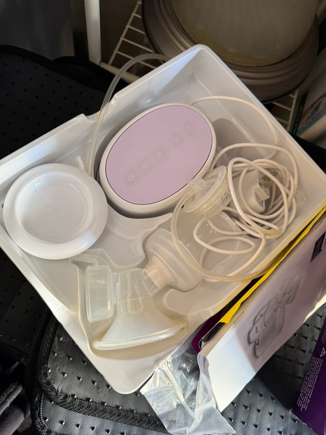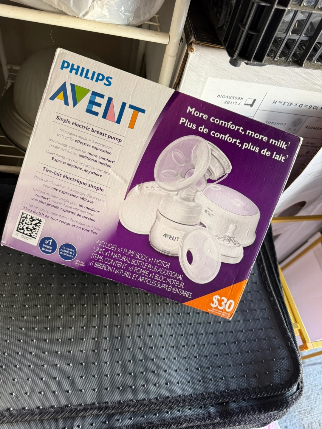 Philips Avent single electric breast pump. Comes with a natural bottle and comfort breast pads. Battery operated motor unit for expression anytime, anywhere. Got it for $30 but didn’t end up fitting. Open for offers.