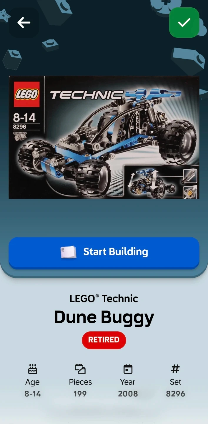 Buy & SellLEGO Technic 8296 Dune BuggyLEGO Technic 8296 Dune Buggy$45LEGO Technic Dune Buggy set 8296. Includes 199 pieces. Built for ages 8-14. It's from 2008.WHERE TO MEETCheck LocationView MapSELLERAlexClarkson31025 reviews0 chats·0 favorites·6 viewsSEND CHAT TO SELLERHi Alex! I’m interested in your listing.Hi Alex! I’m interested in your listing.Get the Karrot app to chatSign In to chat