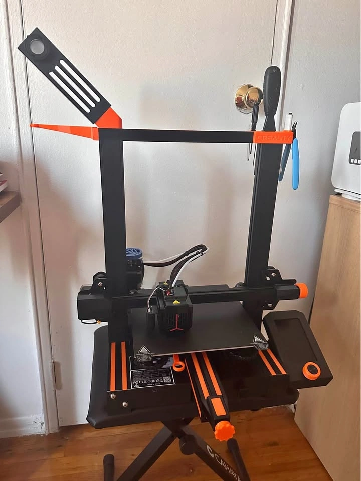Brand new Creality Ender 3 v2 Neo 3D printer. It's only been used to print two sample models (Bunny and Banchy) from the included micro SD card. Comes with the original box and all accessories. It also includes several orange accent mods printed from another 3D printer: Belt tension cover, LCD knobs, XY knobs, Slot covers, 45-degree spool holder, Filament guide, Bed handle, and Tool holder. This is a great open-source 3D printer for beginners and enthusiasts, with lots of potential for future upgrades. Asking $200, pick up only in Woodside, Queens, NY.