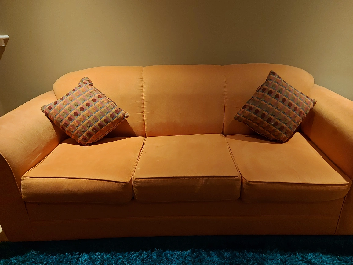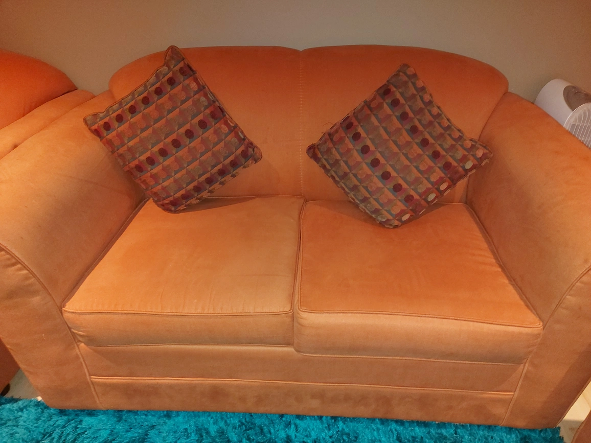 3 seater, 2 seater, 1 seater with cushion for sale. can be used for secondary seating in basement. these are used sofas . price is entire set