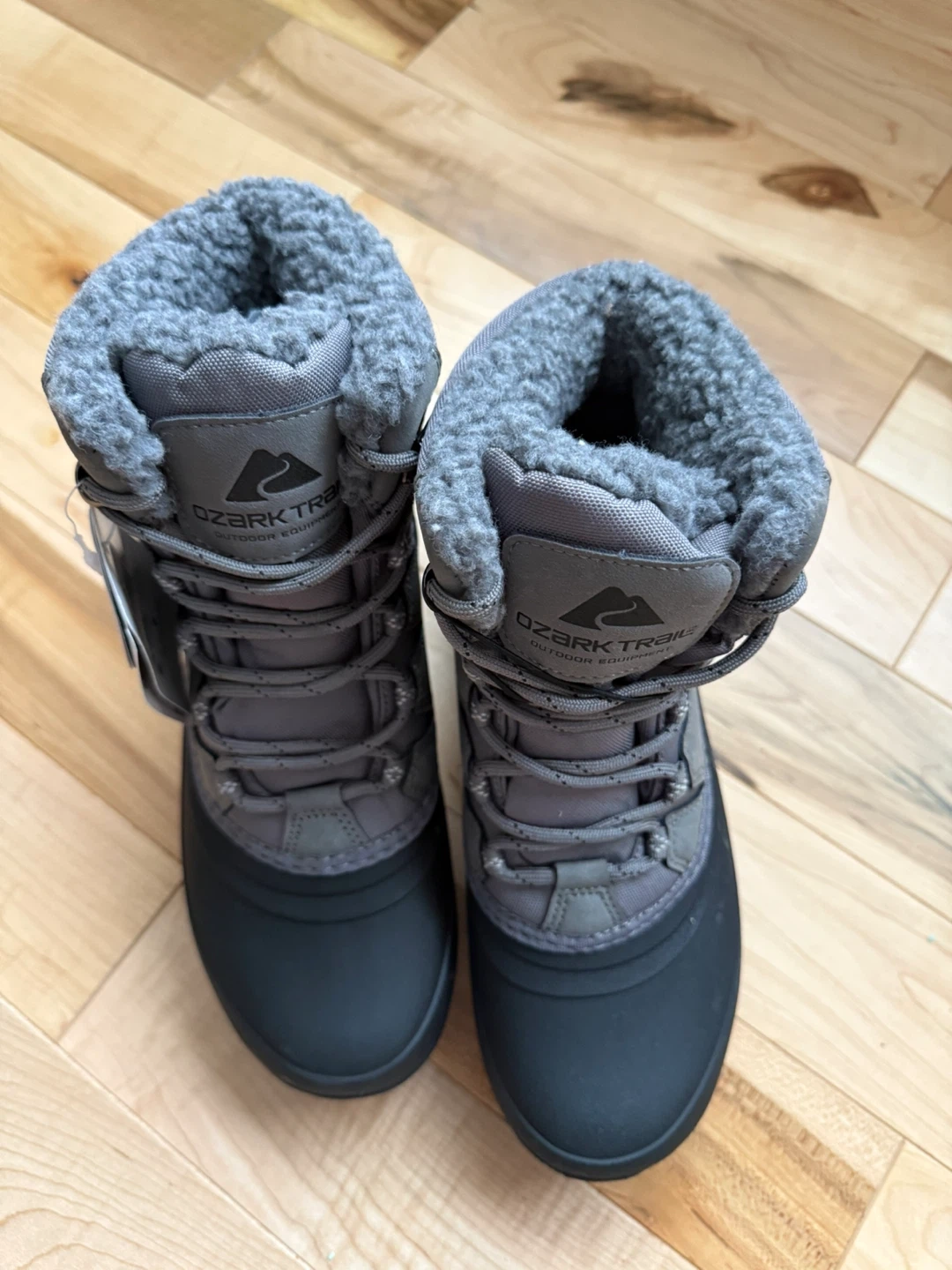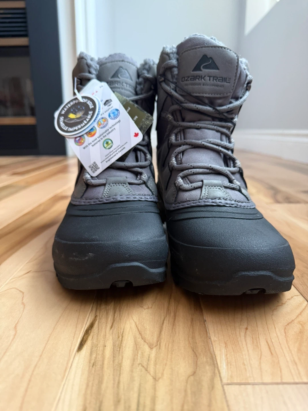 Selling a pair of Ozark Trail winter boots in great condition! They're a size 9 and perfect for keeping your feet warm and dry during the winter months. These boots are waterproof and have a comfortable, insulated lining. Ready for the snow!