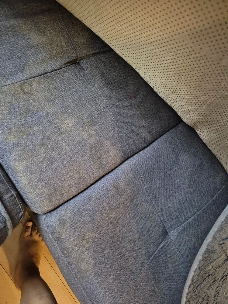 **there is one internal spring that needs to be popped back into place, and the cushions have some surface stains (see photo).