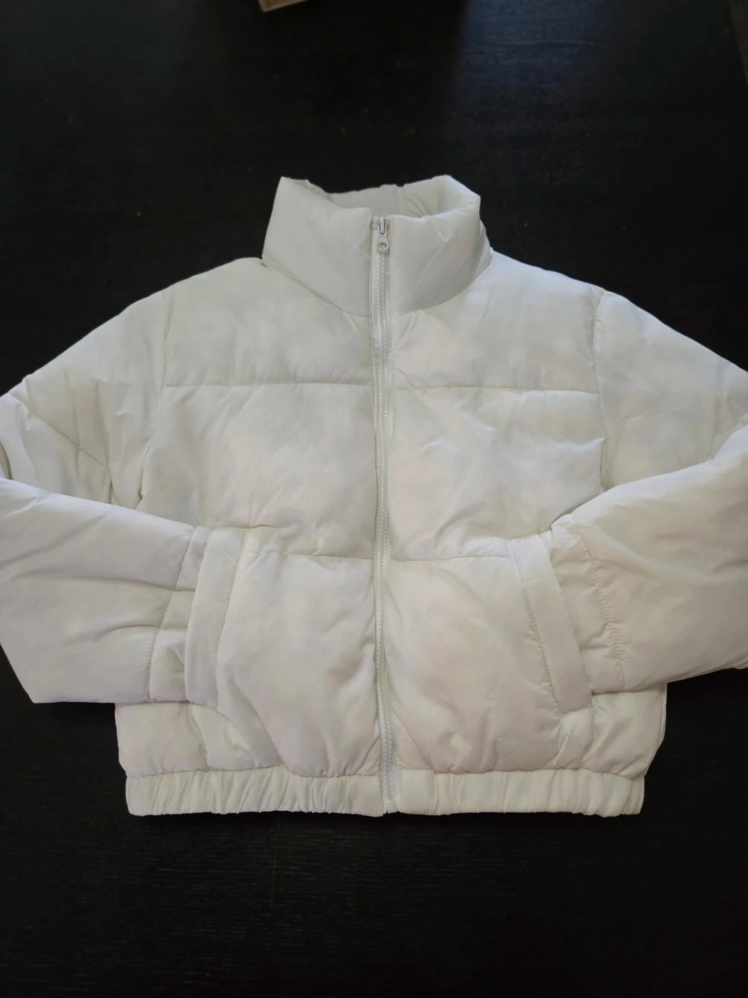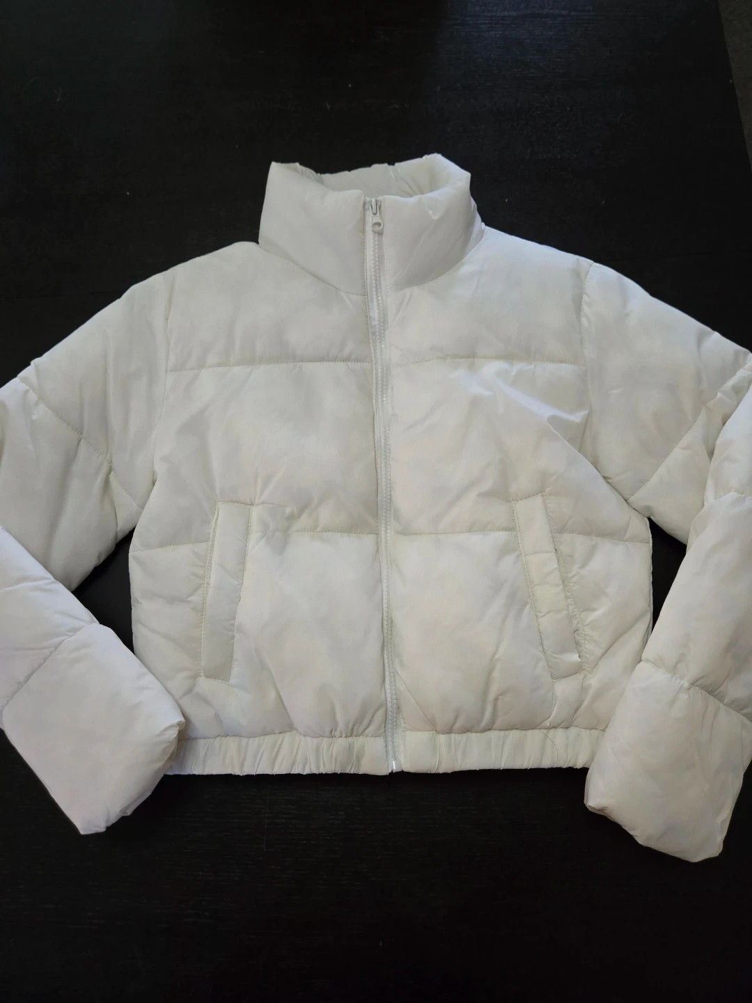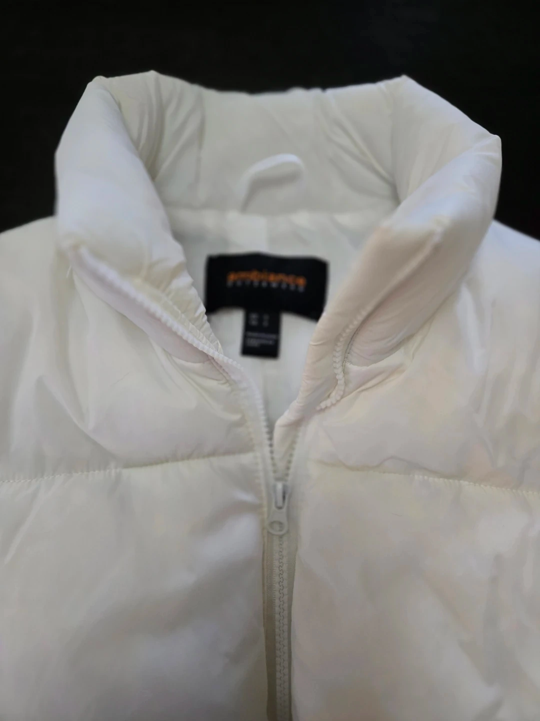 Cute white puffer jacket from Ambiance! It's a size small and in great condition. Perfect for layering or wearing on its own during milder weather.
