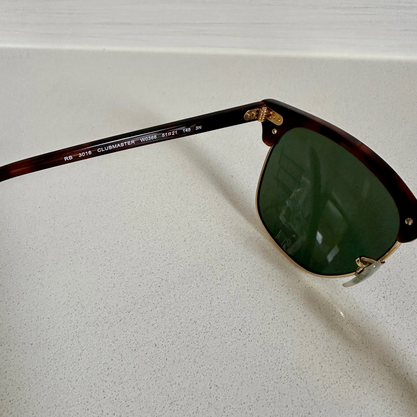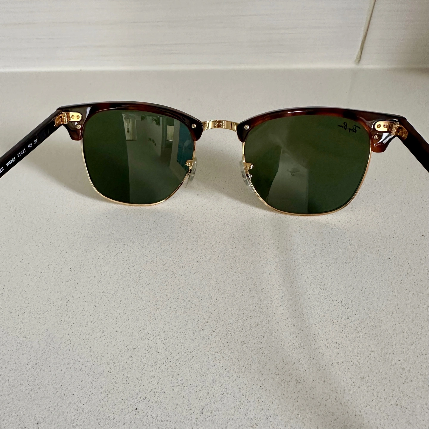 Barely used, in great "like new" condition, Clubmaster classic sunglasses from Ray Ban. The Clubmaster Classic sunglasses embody bold Ray-Ban style with their iconic browline design. Does NOT come with original case and cleaning cloth.
