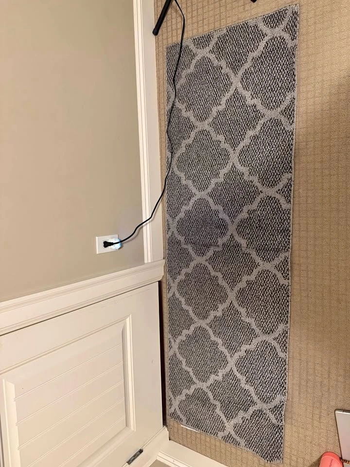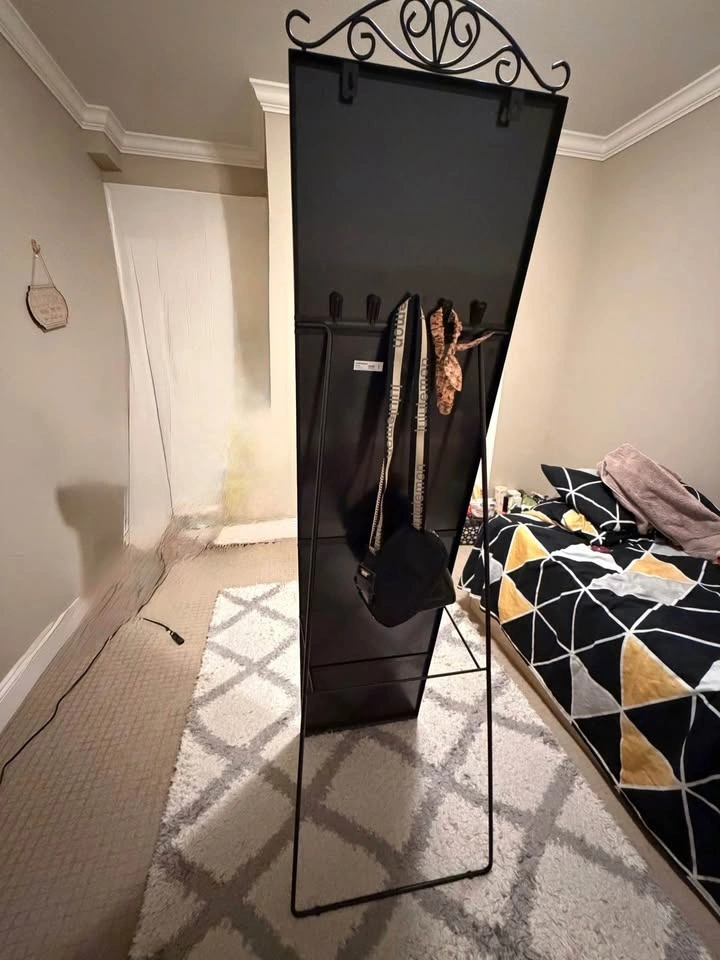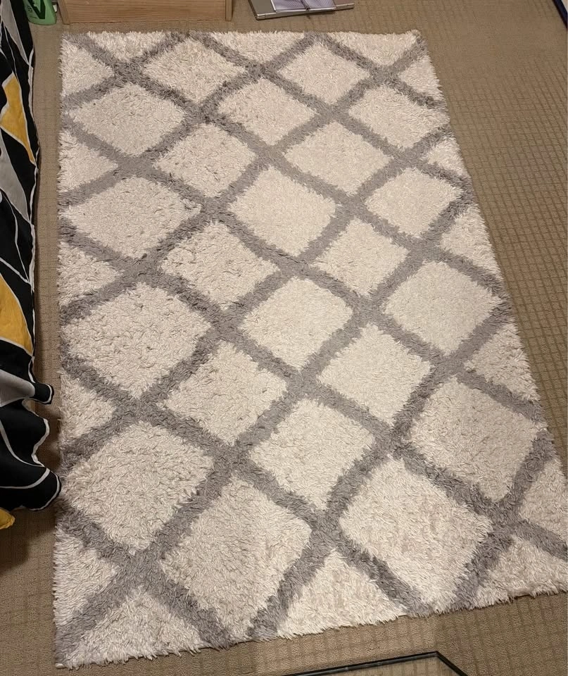 White rug from Walmart, used for 8-9 months, vacuumed weekly. Selling for $40. Can be washed with a rug washer. Black mat from Costco for $10. IKEA mirror for $50, originally $70+tax. In like-new condition, no broken parts or cracks. Moving out sale, need to be gone by end of Feb.