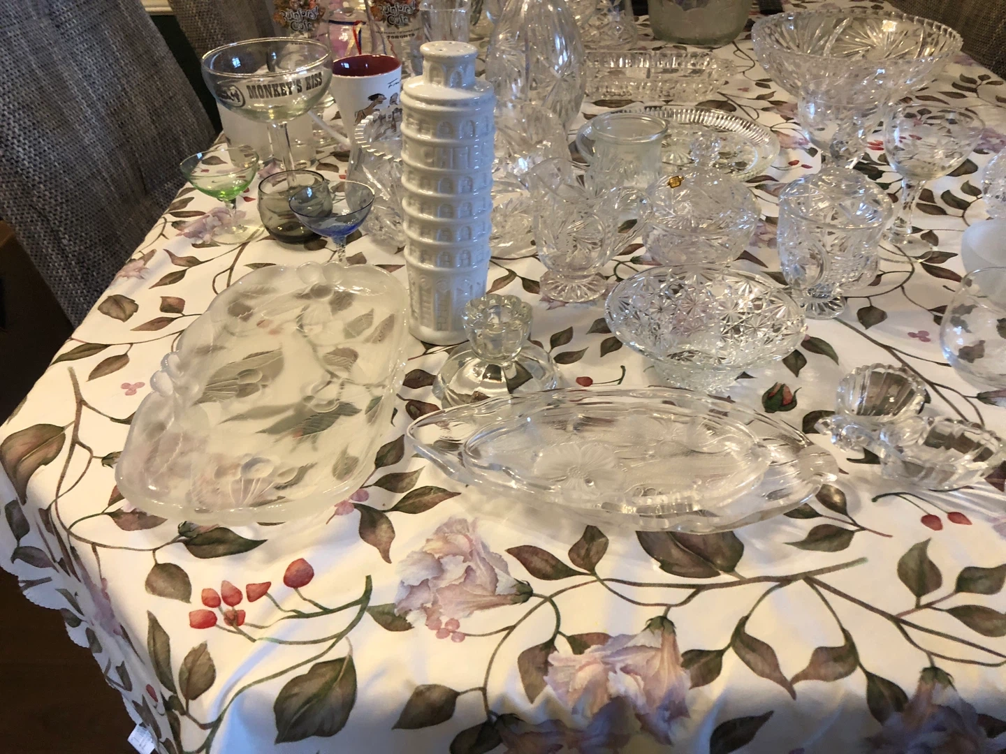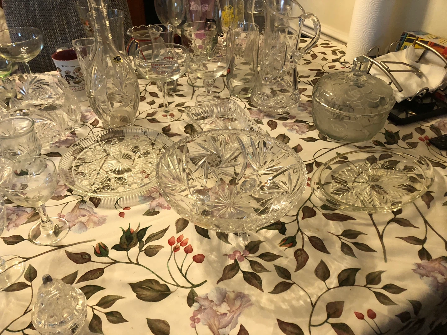 Selling a collection of various crystal glassware pieces. There's a variety of items including bowls, plates, glasses, and pitchers, all with intricate designs. Perfect for adding a touch of elegance to your dining or display cabinet!
