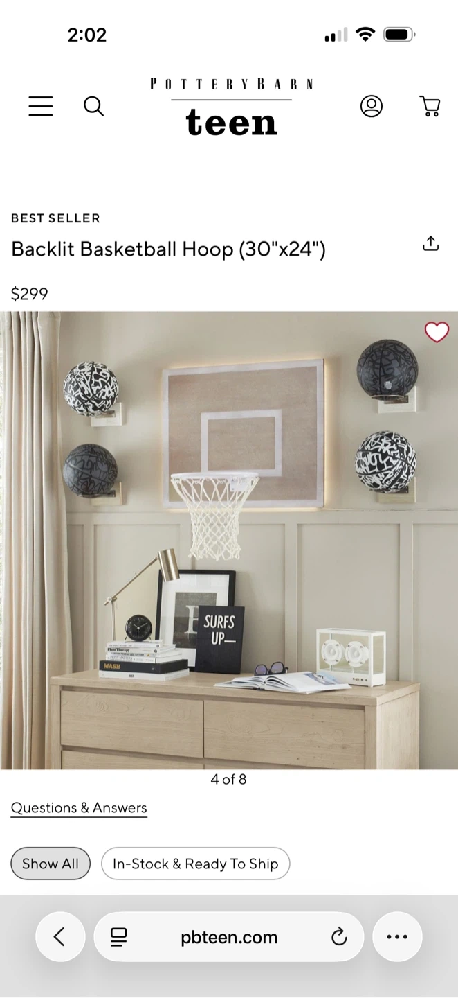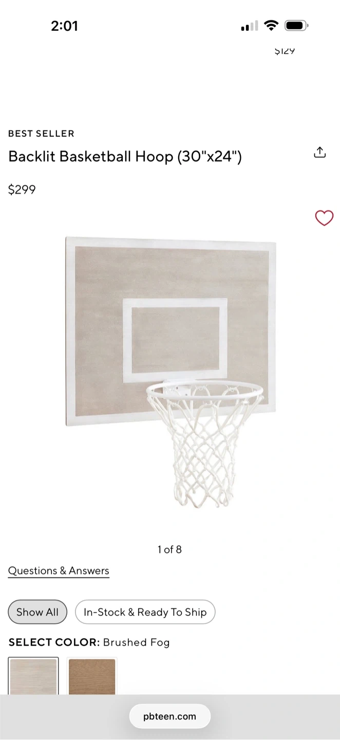 This is a Pottery Barn Teen backlit basketball hoop. It's 30"x24" in size and comes in Brushed Fog color. Includes the hoop and net.