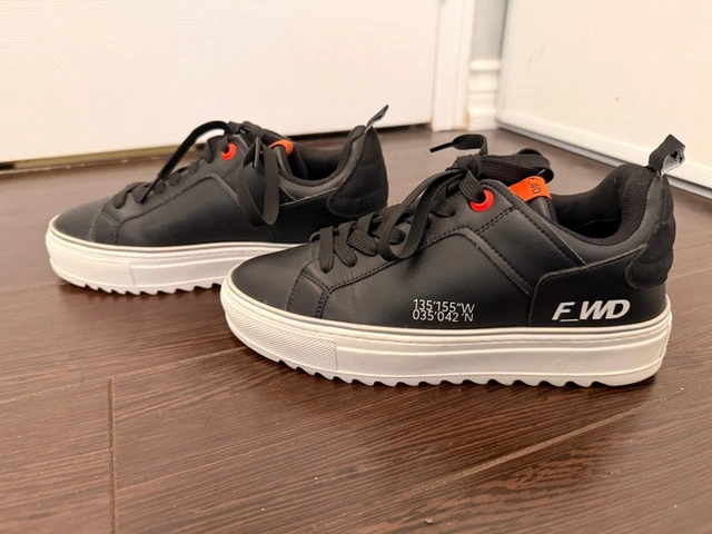 Black F_WD lace-up sneakers with side coordinates printed on them. Original price $400. Size 36 (fits like a US 6). Used, but in like-new condition. Cash only, please. For pickup by owner.