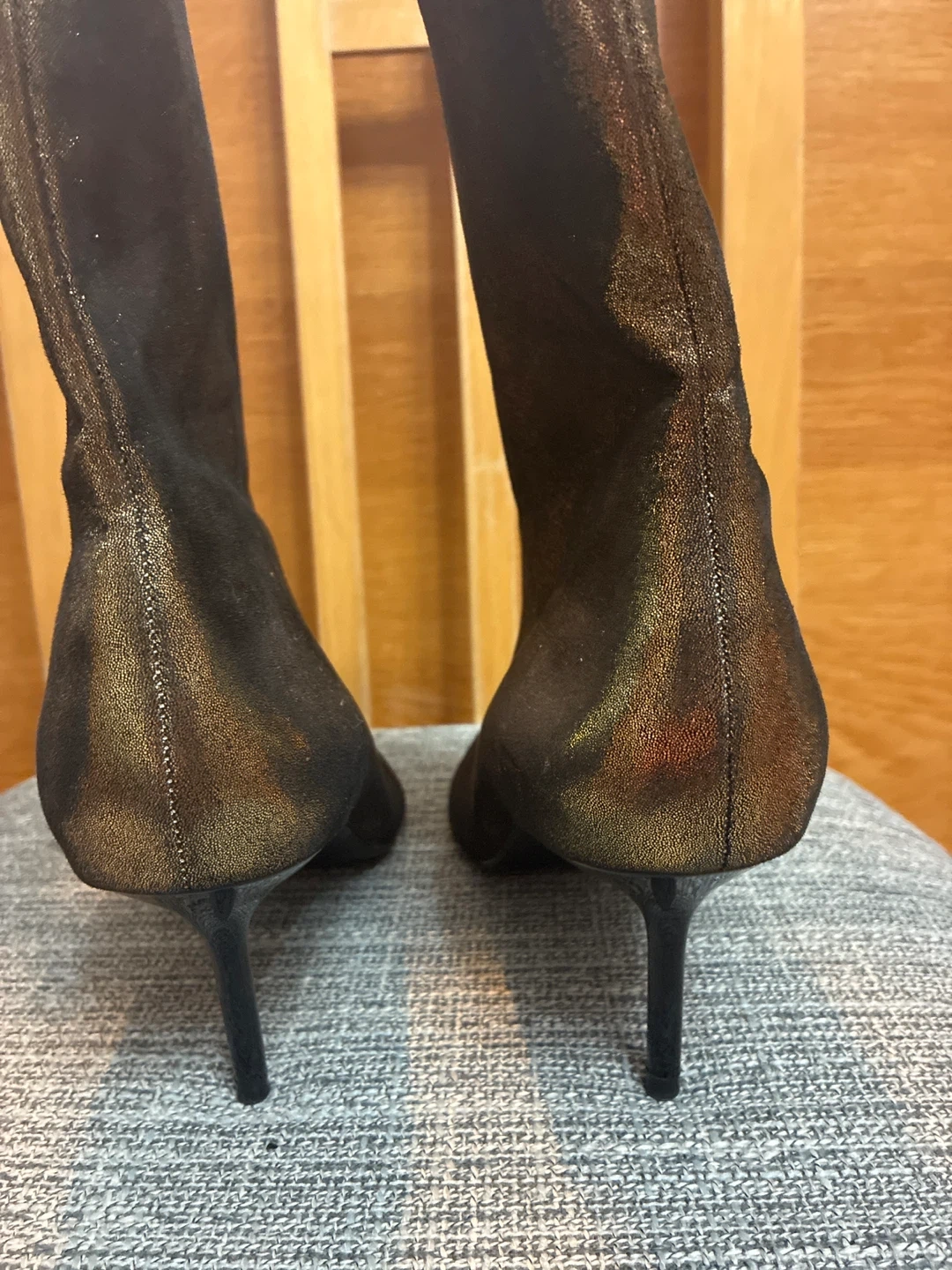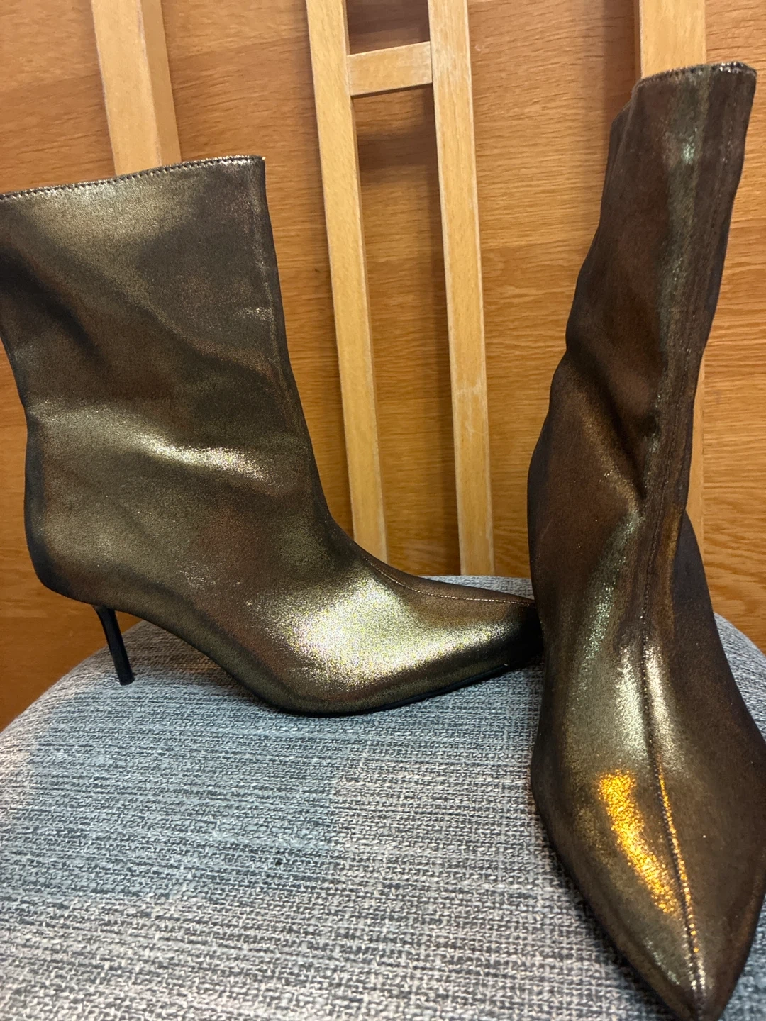 Selling a pair brand of new Zara ankle boots in a shiny gold colour. They are a European size 37. US 6.5 Perfect for adding a bit of sparkle to your outfit!