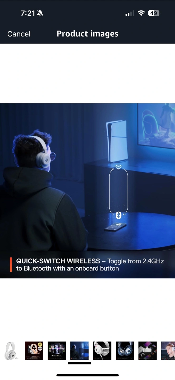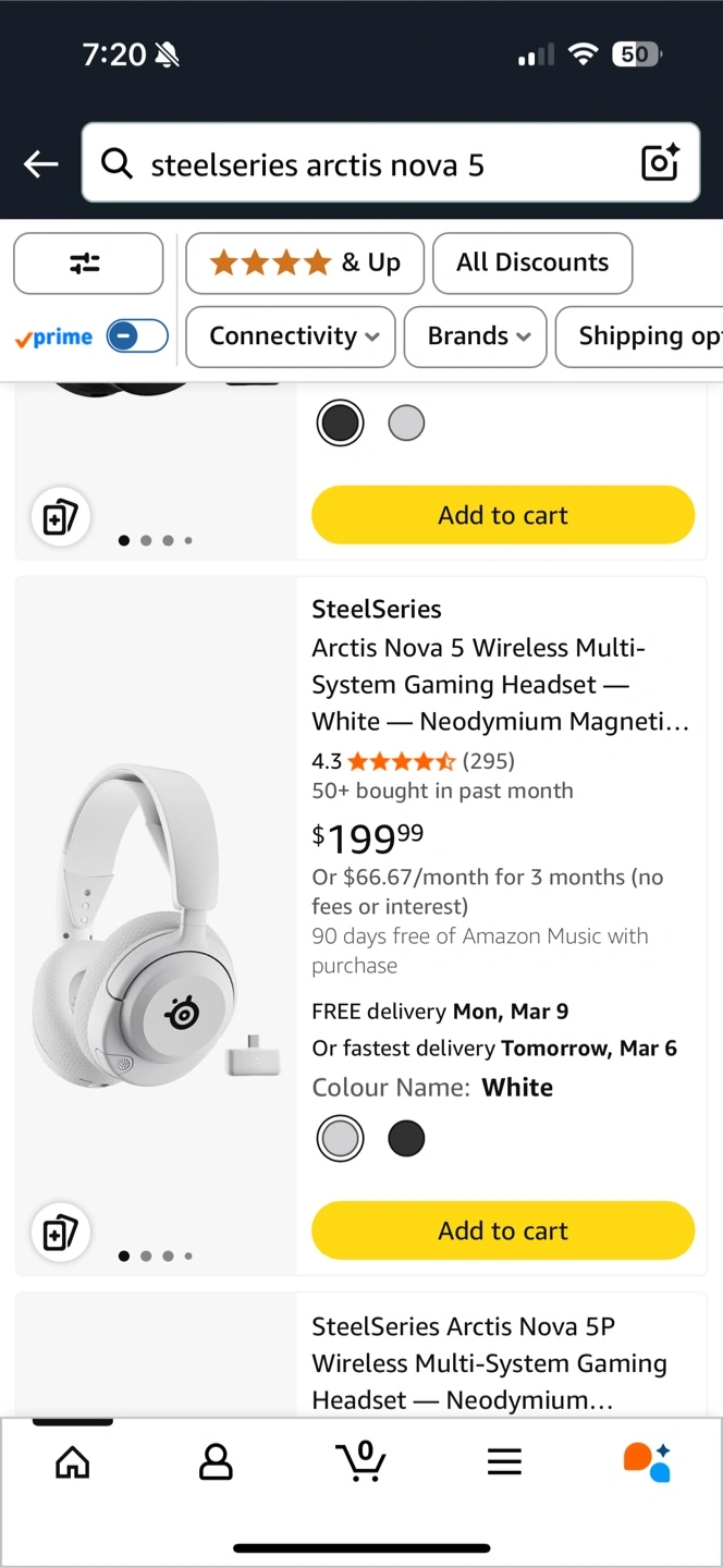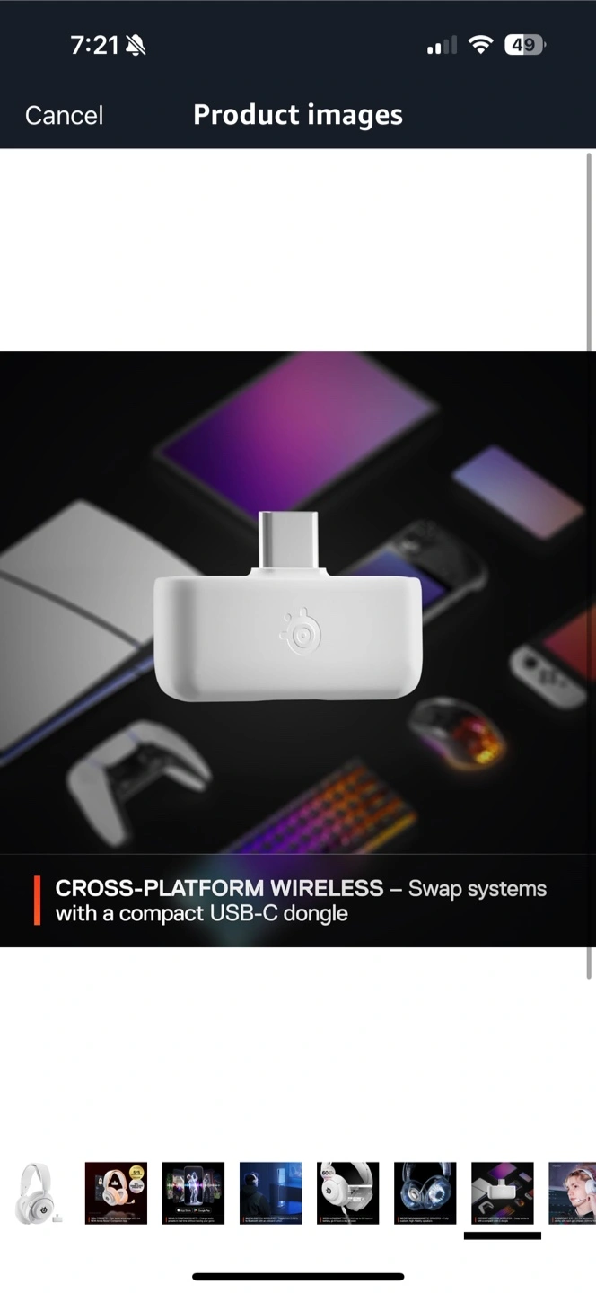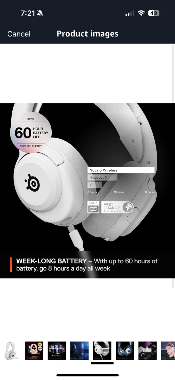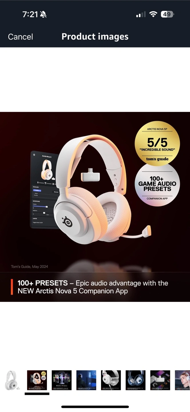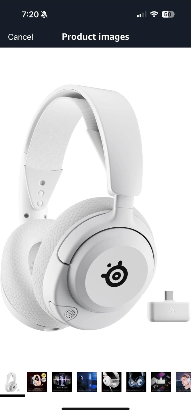 SteelSeries Arctis Nova 5 wireless gaming headset in white. It's multi-system compatible with a USB-C dongle. Enjoy up to 60 hours of battery life. It comes with the Arctis Nova 5 Companion App for custom audio presets.