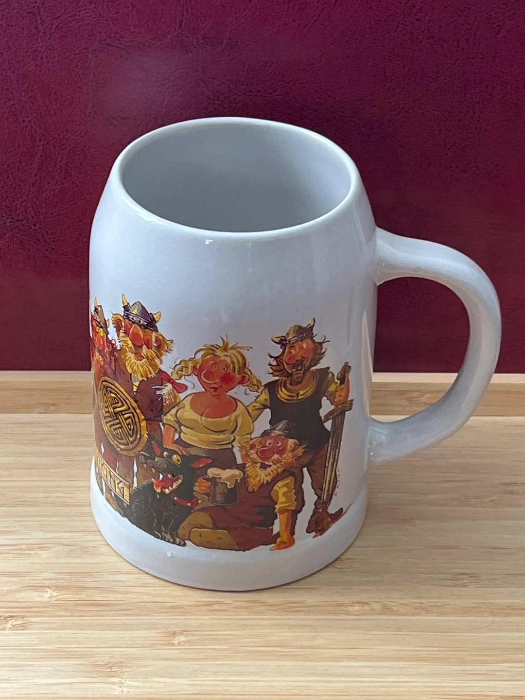 Solarfilma Kelandk The Icelandic Viking Family Cartoon Ceramic Tankard Stein Mug. It's in great shape and ready for your favourite beverage.