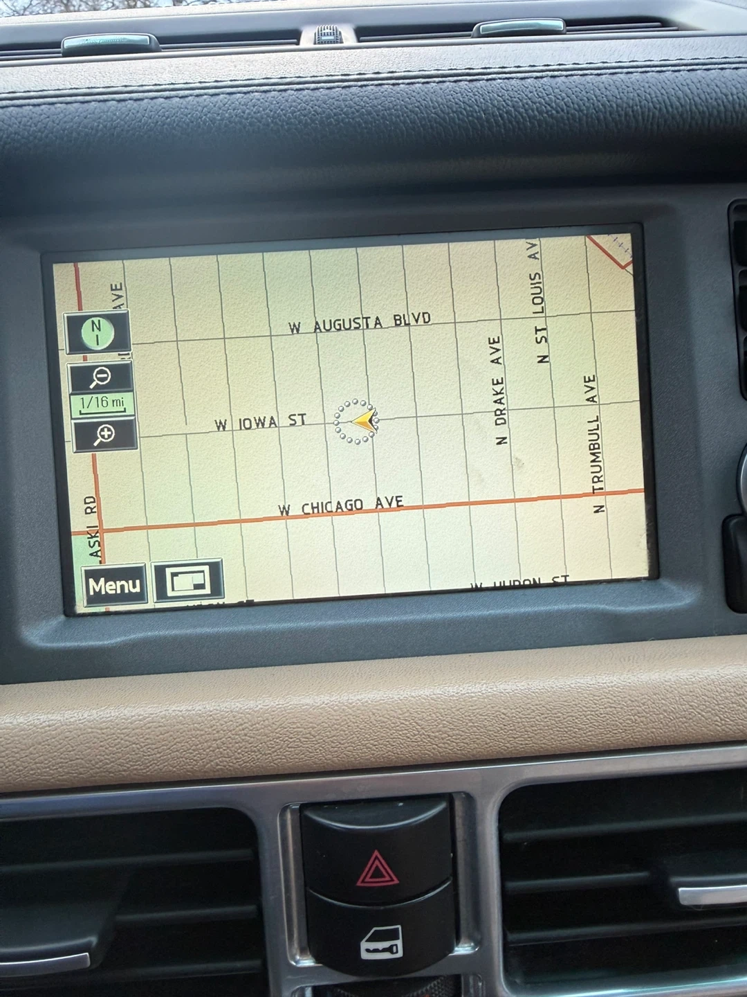 This is the built-in navigation display screen for a Land Rover. It shows maps and vehicle information. The screen is in good working order.160,000 original miles Only serious buyers