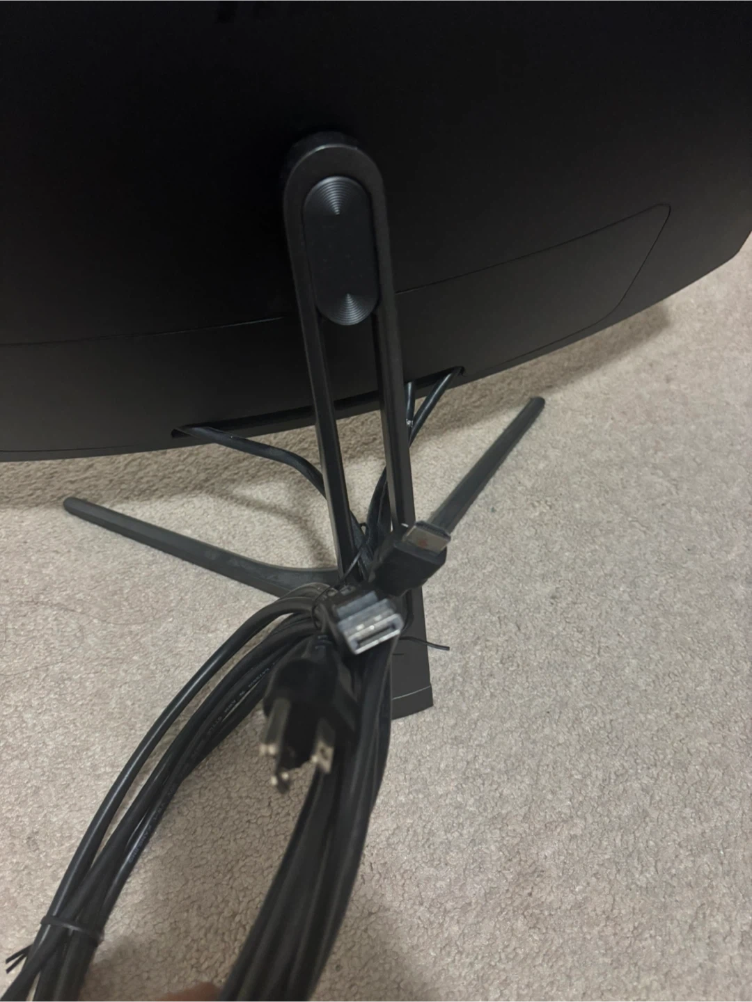 This is an MSI monitor with a sleek black design. It comes with a stand and necessary cables. Great for gaming and everyday use! Its adjustable and is 24 inches with 144 hz.