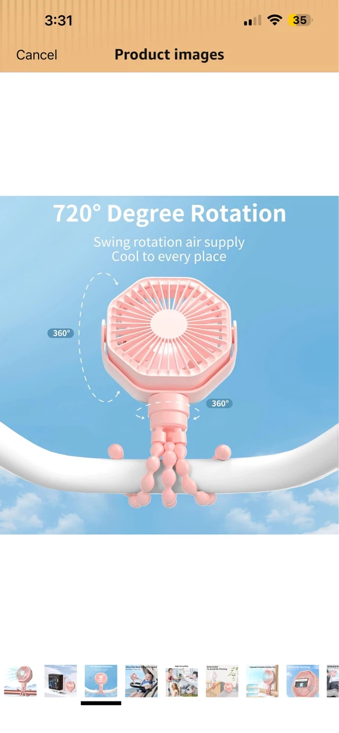 This portable fan is designed for multi-scene use with strong winds. It features 3 speeds for adjustable airflow, offering 16 hours on the lowest setting, 9 hours on medium, and 6 hours on high. The 720-degree rotation ensures cool air reaches everywhere. It also has an ultra-fine mesh fan guard to keep little fingers safe.
