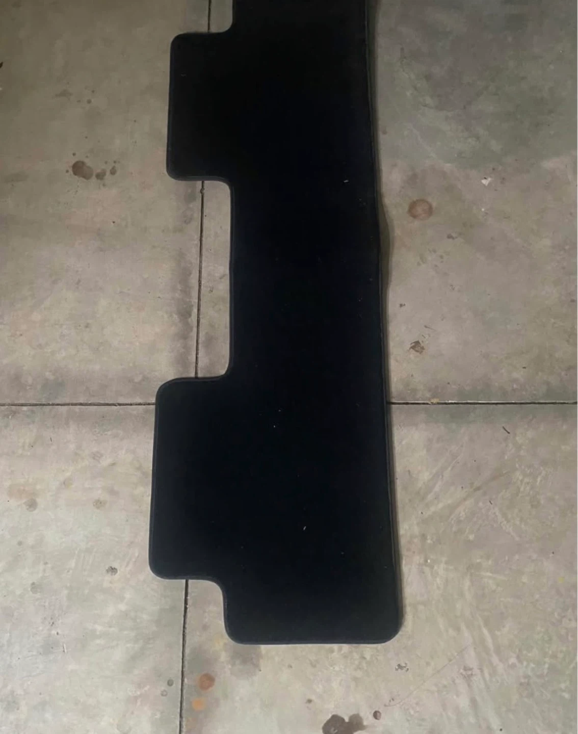 Set of three black carpet floor mats for a vehicle. Material is carpet. Protects your car's interior. For Tesla model 3.