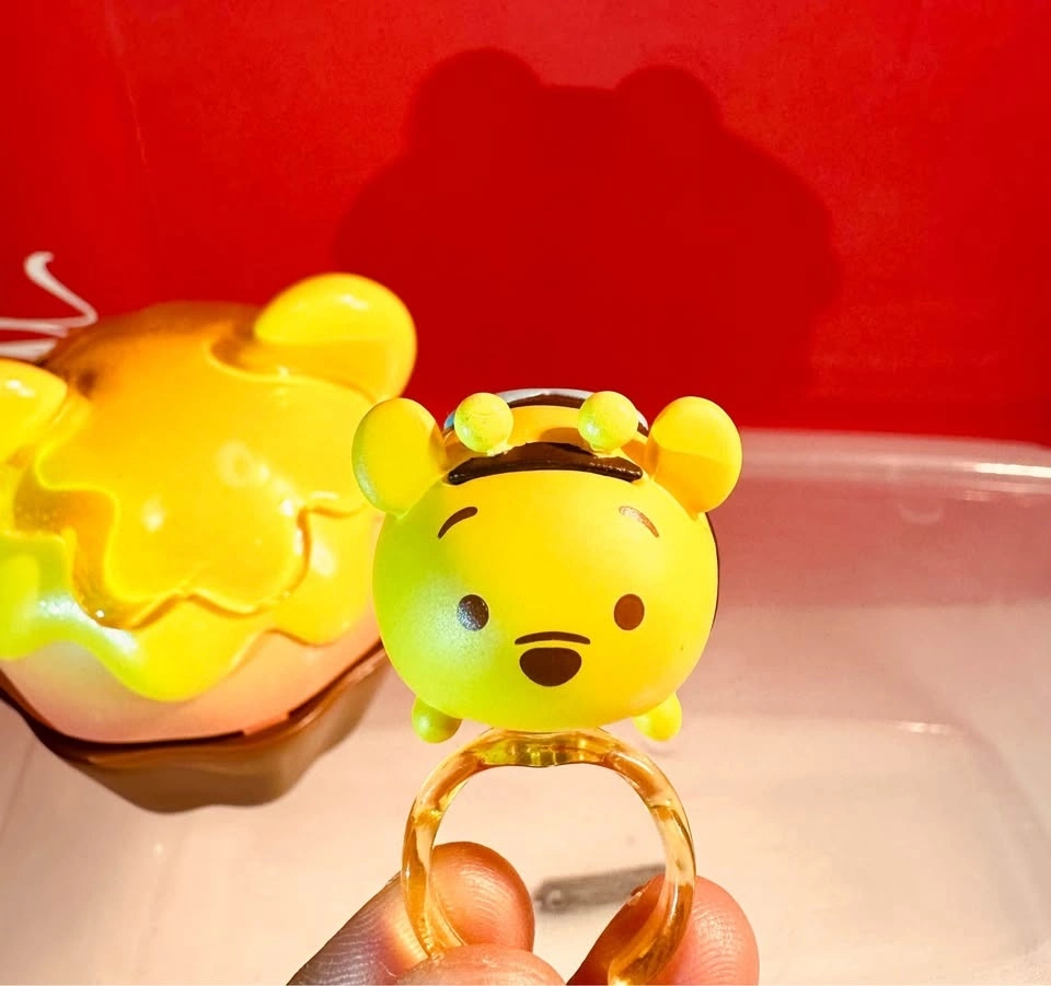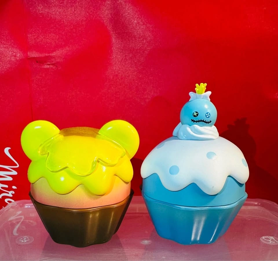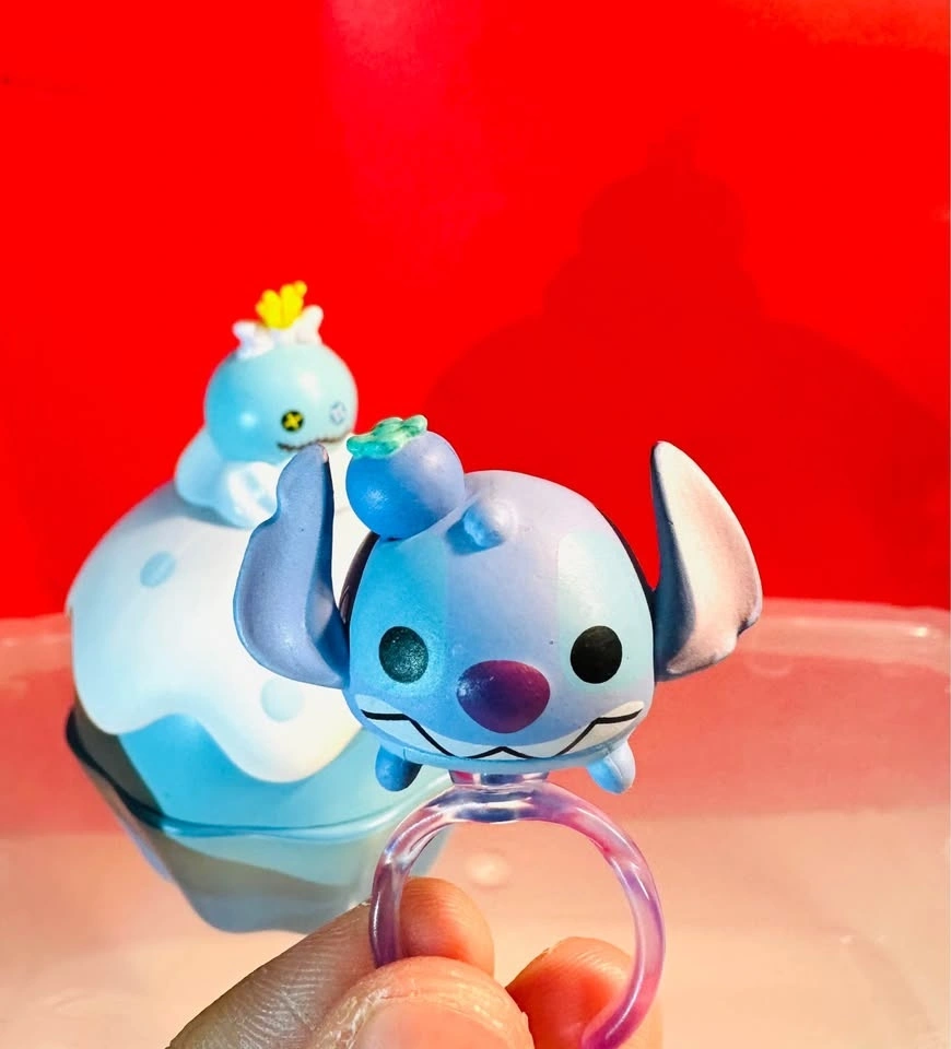 Disney Tsum Tsum Cupcake Blindbox Figurines featuring Winnie the Pooh and Stitch. These have never been taken out of the box and kept in their original packaging. Each set includes a cupcake outer shell with the character and a ring. The ring can be worn separately or with the figure. There's an on/off switch to light up the inside of the cupcake (a video is available showing this feature). Winnie the Pooh cupcake is 7cm tall, Stitch is 9cm tall. $10 each!