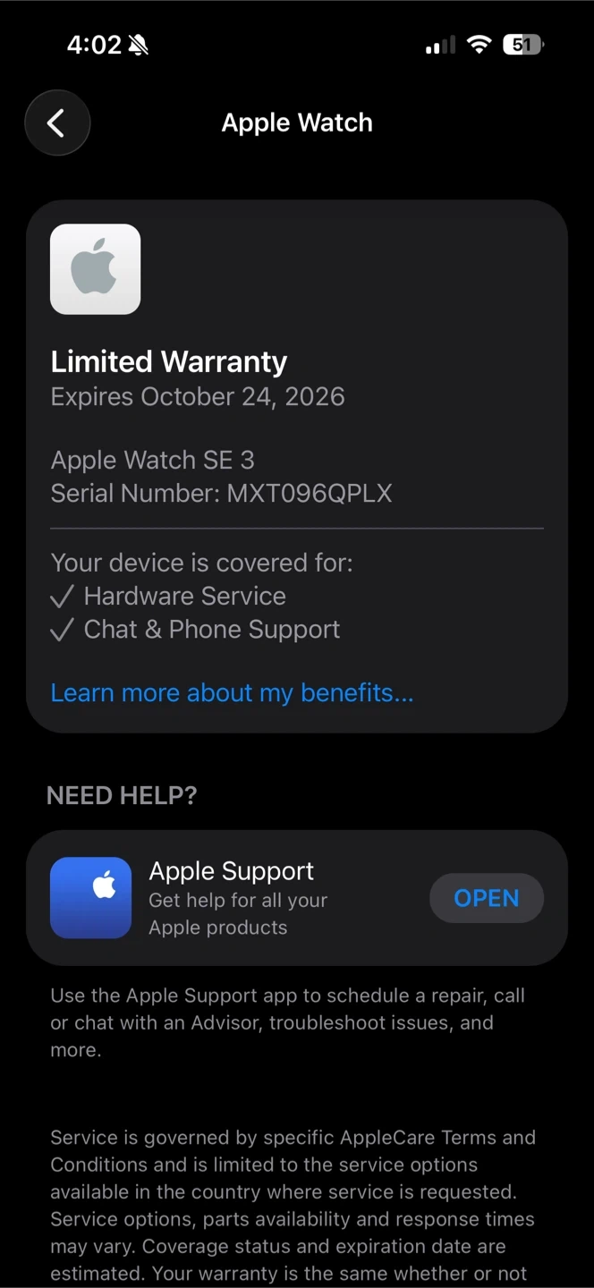 Limited Warranty Until October 24, 2026 – covers hardware (model MEH34LW/A).