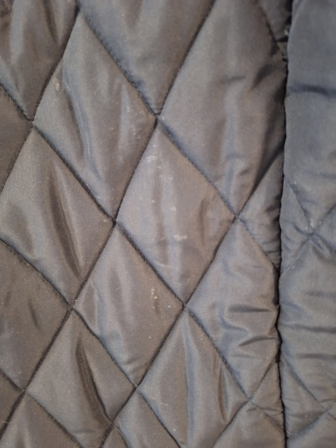 Here's a black quilted coat. It has a hood and buttons for the detachable faux fur lining. Zipper and snaps are in good condition.