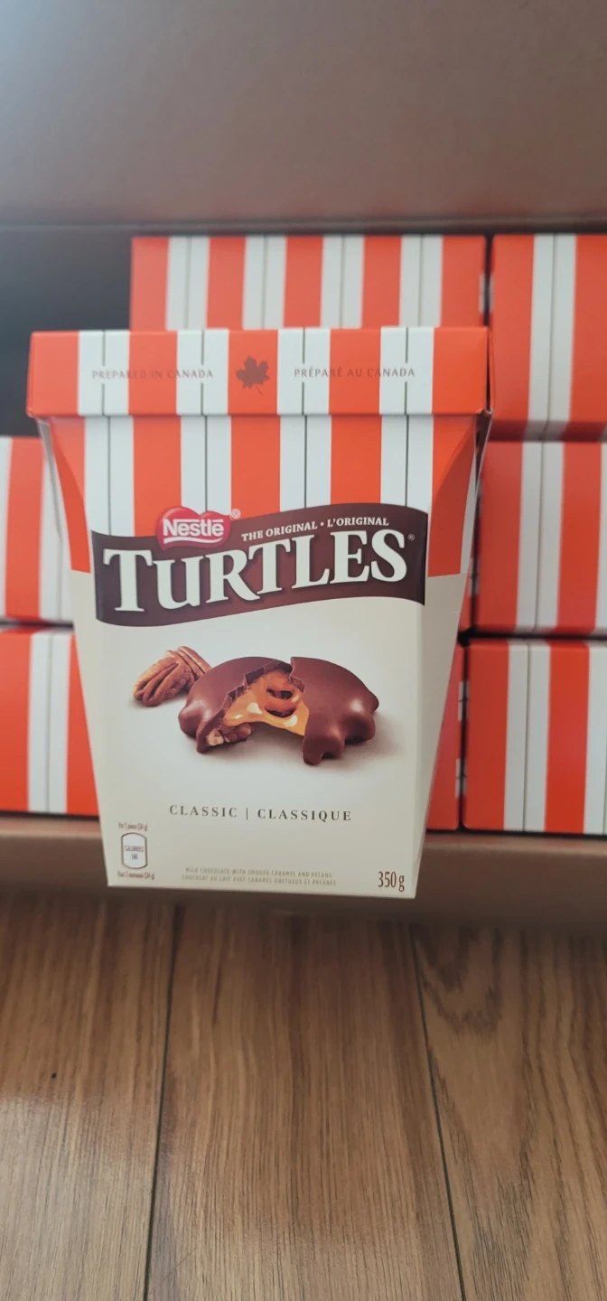 Note:$13 Each box of 350 gram, Milk chocolate with caramel and pecans. Prepared in Canada. This box contains 350g of Turtles classic chocolate. Expiration Date: September /26
