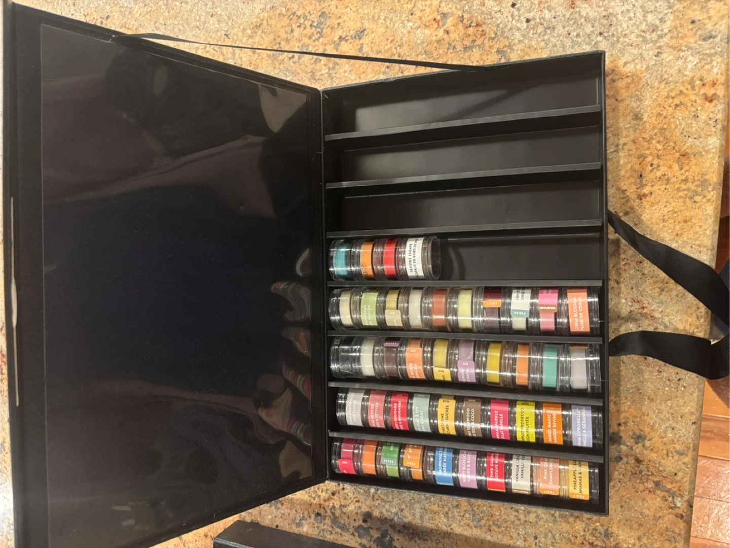 Selling a PartyLite Fall/Holiday Fragrances set! It comes in a carrying case with a variety of scents. The set includes both everyday and specialty fragrances. The fragrances are organized into categories such as Fresh & Clean, Herbal & Woody, Fruits & Citrus, Edible & Spicy, Forbidden Pleasures, Just Desserts, and Celestial Scents