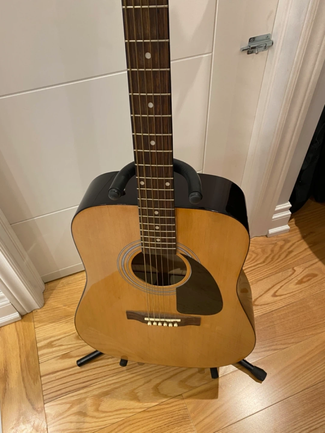 Selling my acoustic guitar in excellent condition. Model Deluxe SA55. Very well taken care. Easy to play and has a beautiful sound. Perfect guitar for beginners, Intermediate as well. Asking 180$ firm included guitar stand( No carry bag). CASH only. No delivery. Thanks