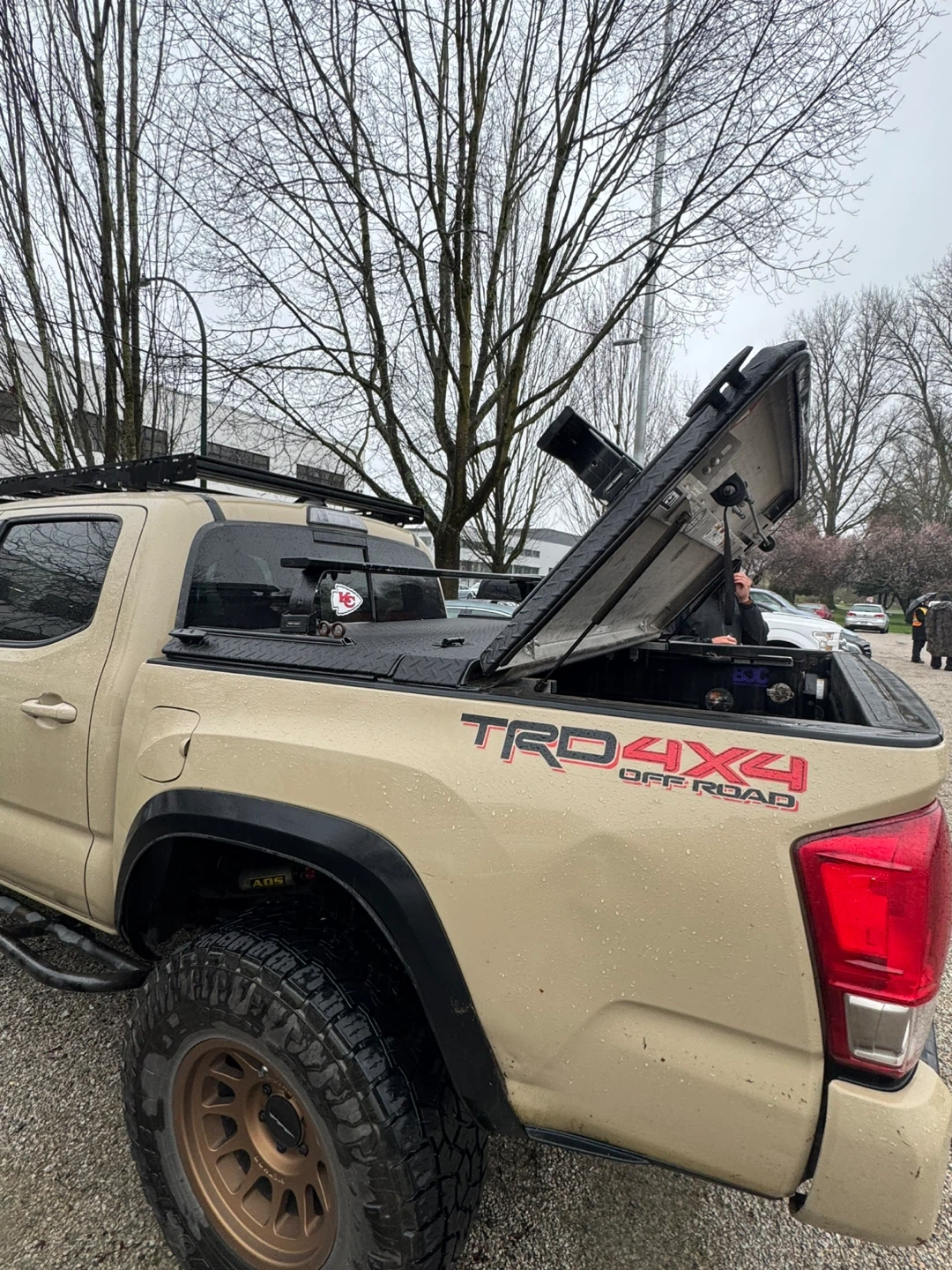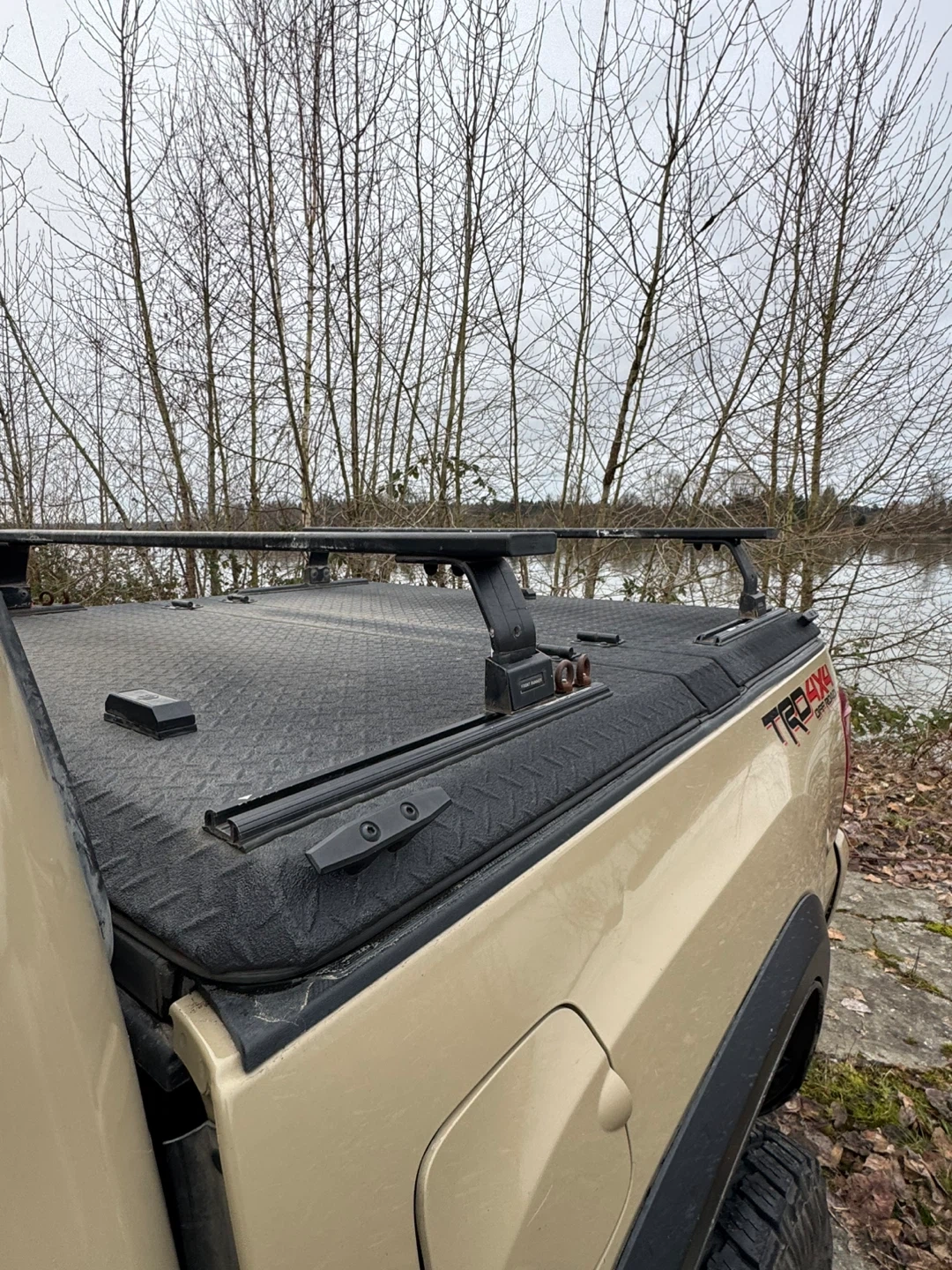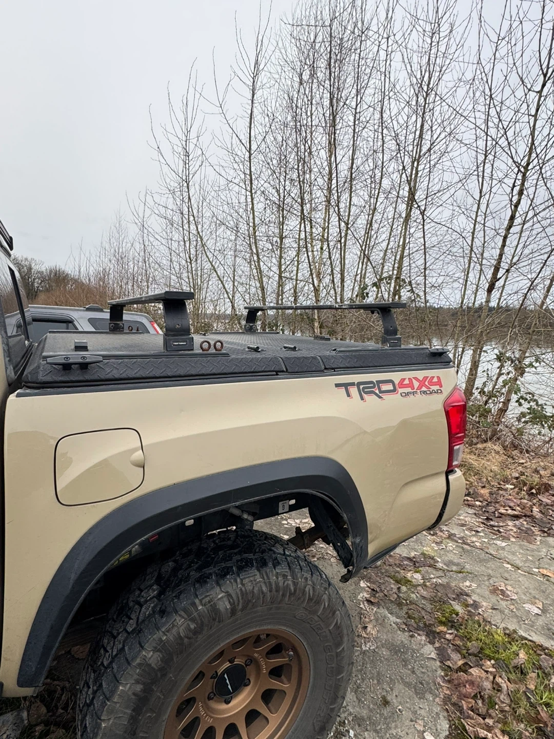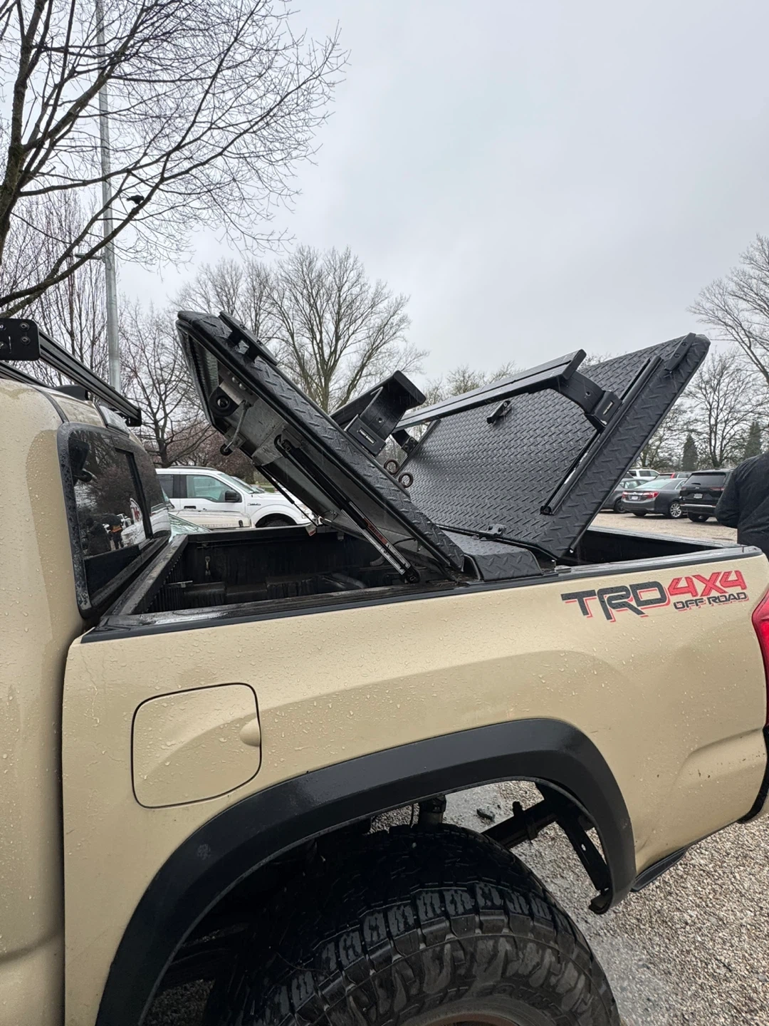 This is a diamondback tonneau cover designed for trucks, featuring an integrated rack system. It's constructed from durable materials and provides secure bed coverage. The cover is designed for easy operation and can hold various cargo on the rack.