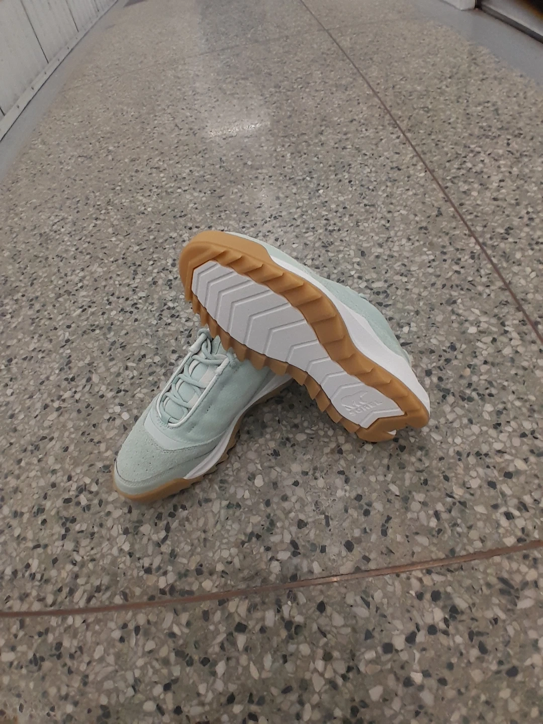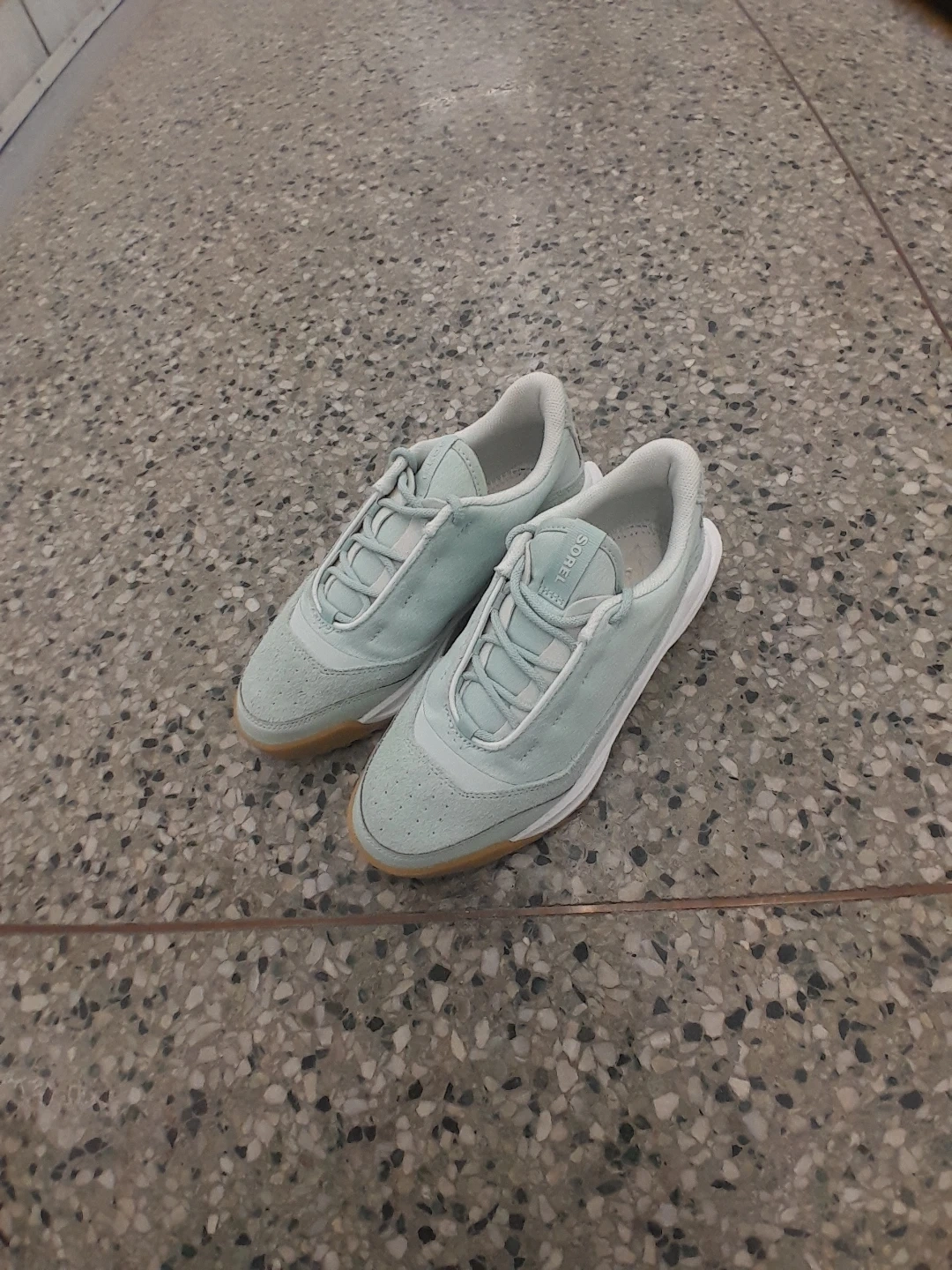 Sorel women's sneakers in a light blue colour. They feature a rubber sole for good grip. These are great for everyday wear or light activities Women's size 7.5
