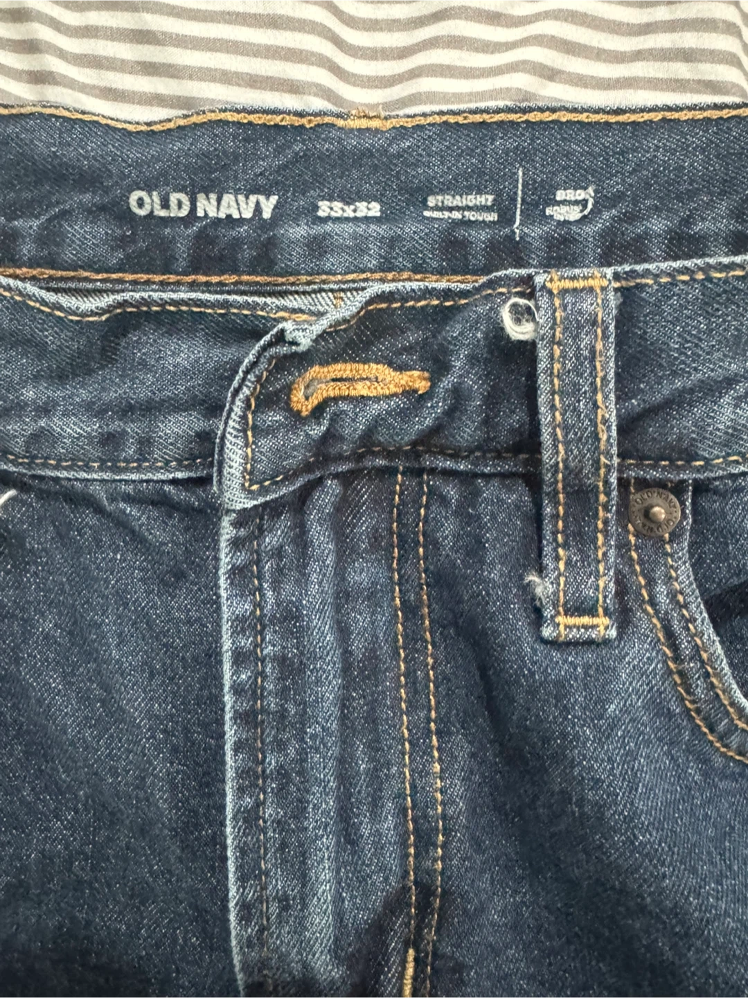 Classic blue denim jeans from Old Navy. Straight fit style with a 33x32 size. Made from durable denim fabric for everyday wear.