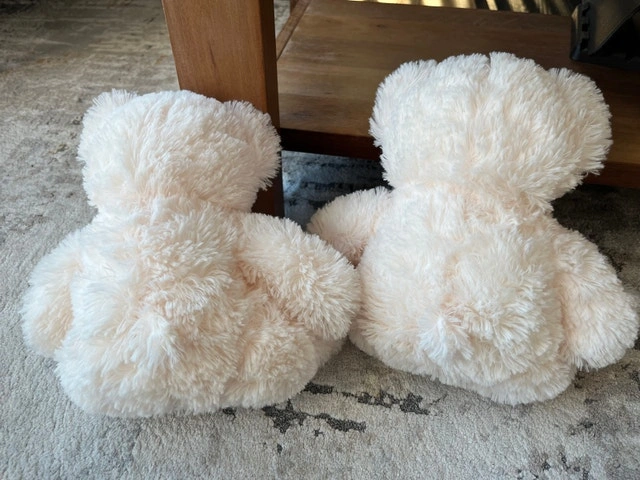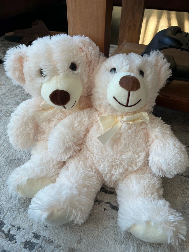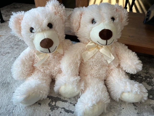 These adorable teddy bears are looking for a new home! They are in good condition, ready to be cuddled and loved by someone special. I'm selling them as a pair because they're best friends, but could sell individually if requested. If the ad is still up, the teddy bears are still available, ready for their next adventure! Cash accepted.