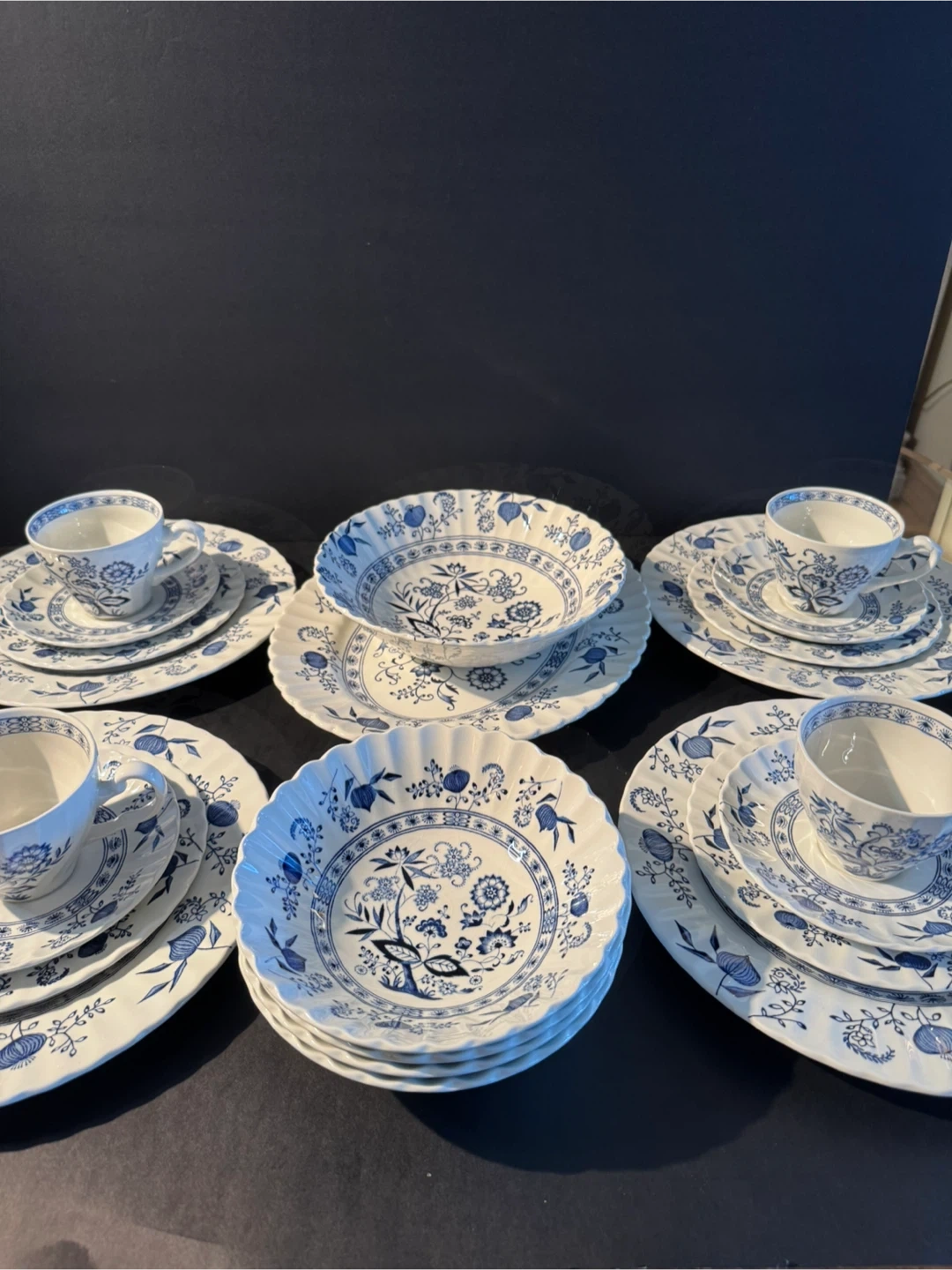 This is a pre-owned Vintage J&G Meakin England Classic Blue Nordic dish set, in good condition, perfect for adding a touch of classic charm to your dining experience. Each piece features the beautiful blue floral design, making it a delightful addition to any collection.