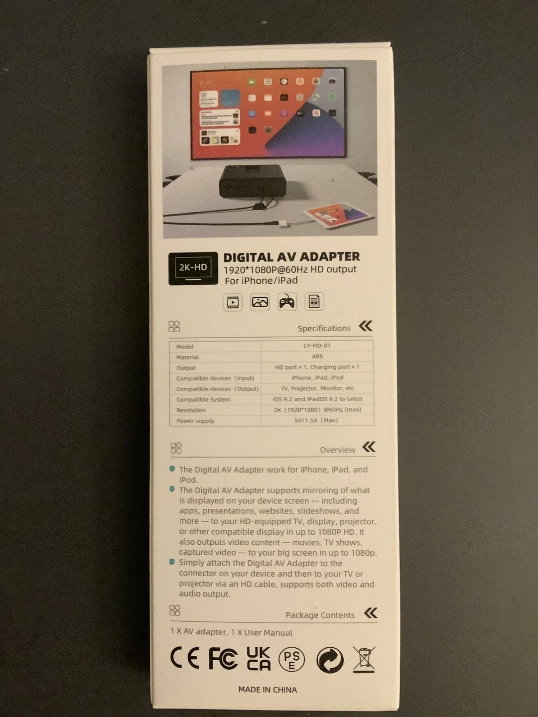 Thunderbolt to HDMI for displaying iPads and iPhones on external displays.