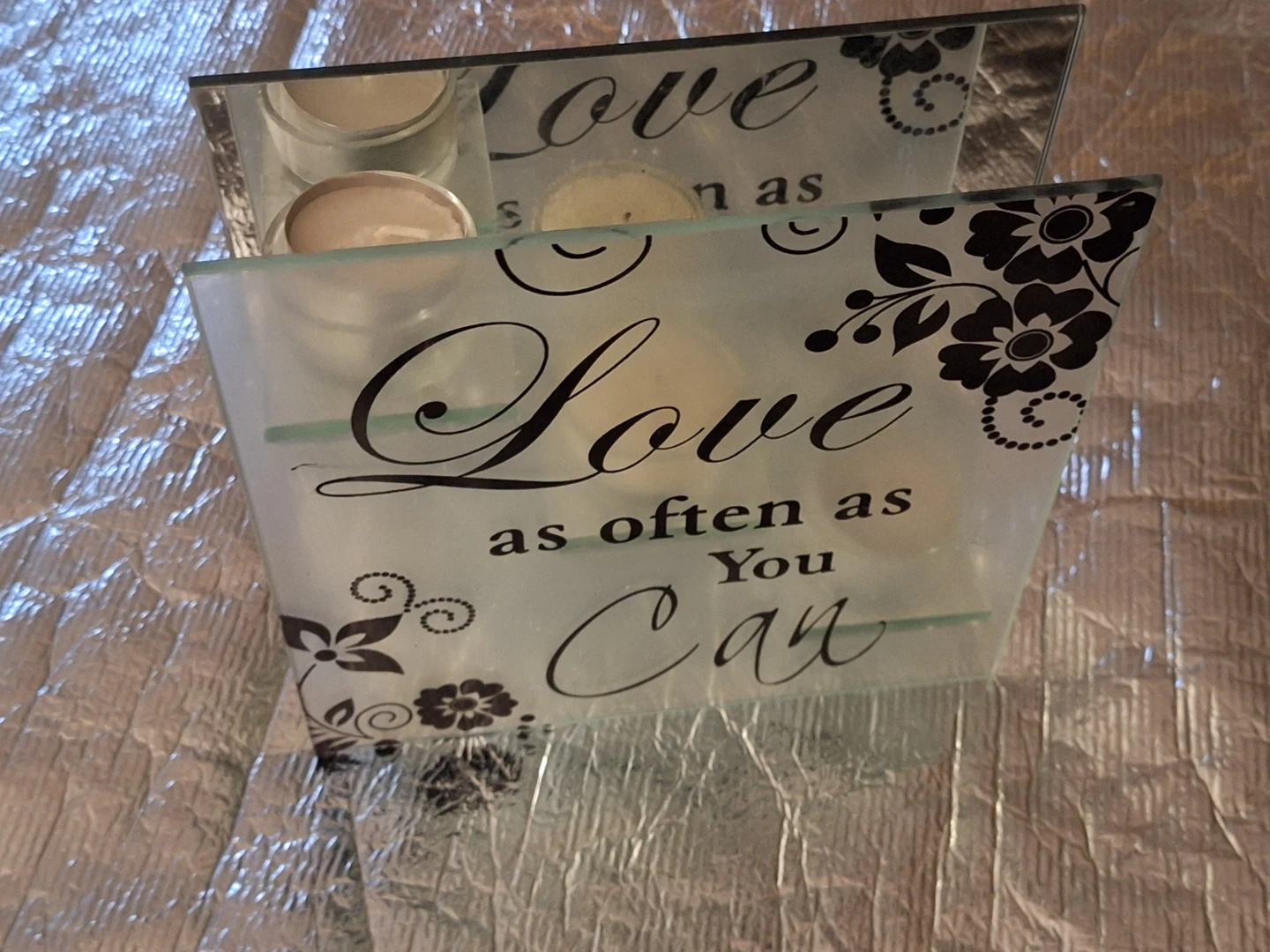 Glass Tealight Holder with "Love as Often as You Can" Decal