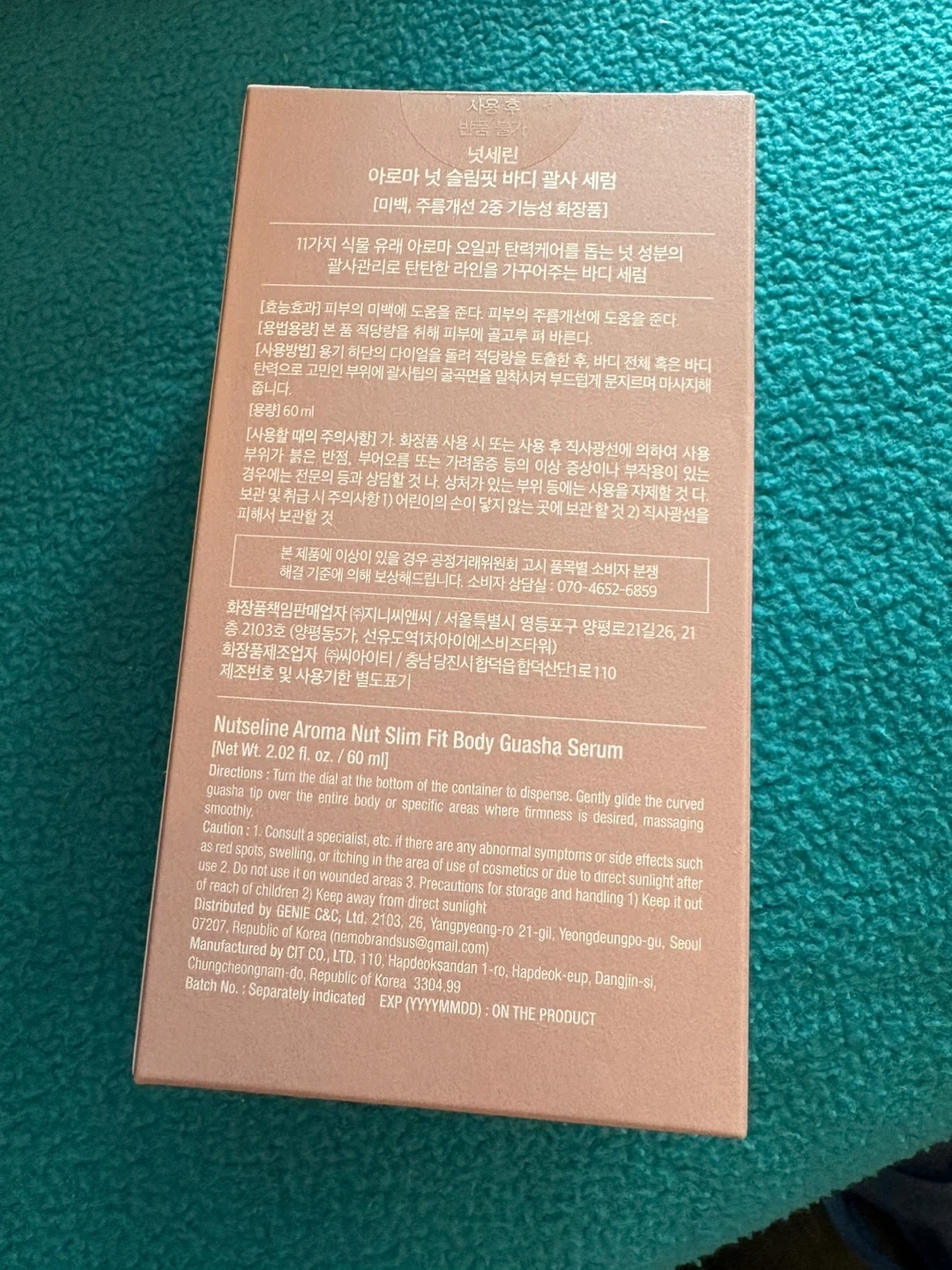 This Nutseline Aroma Nut Slim Fit Body Guasha Serum comes in a 60ml bottle.