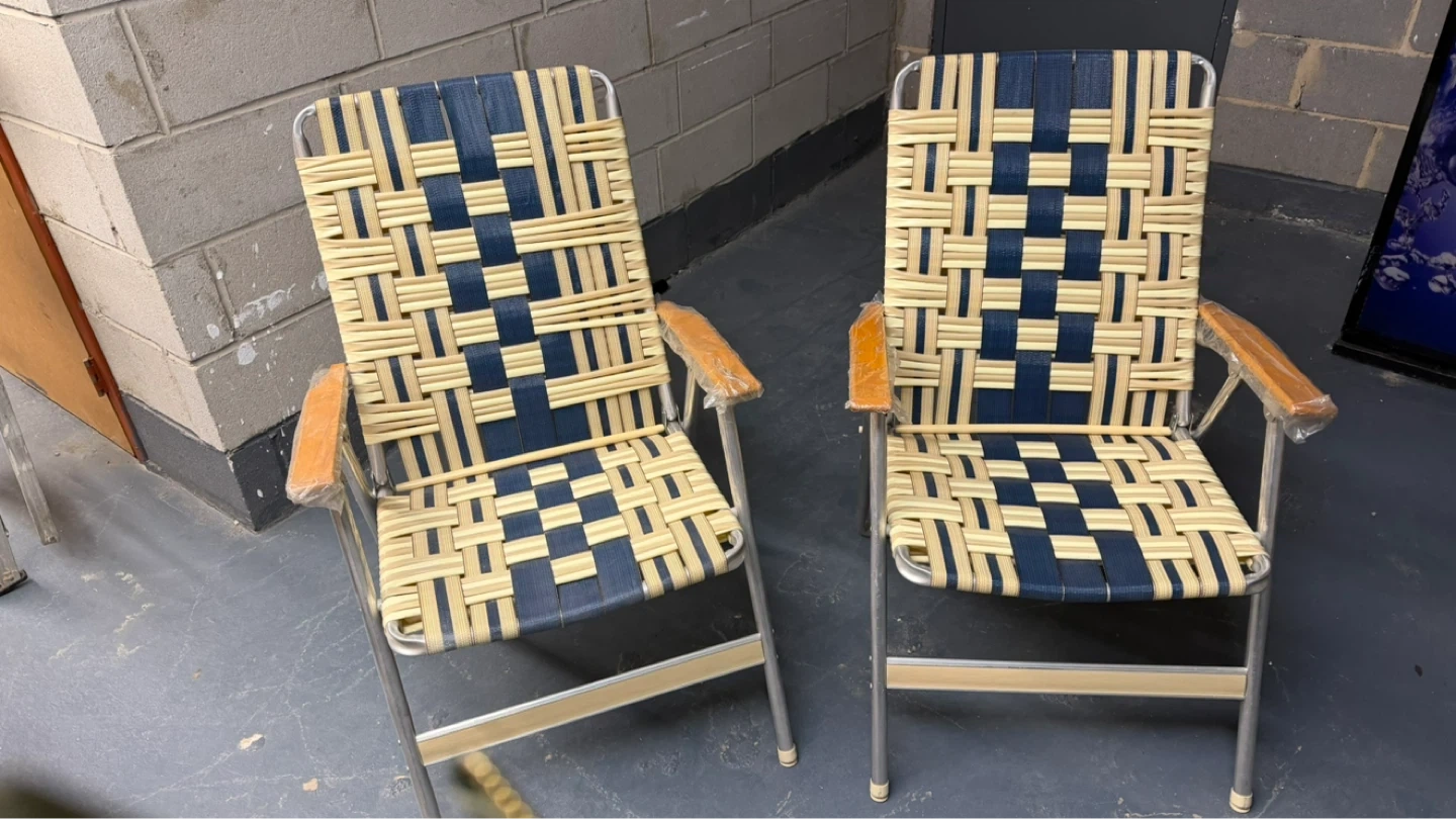 Vintage Woven Webbing Lawn Chairs - Set of 2