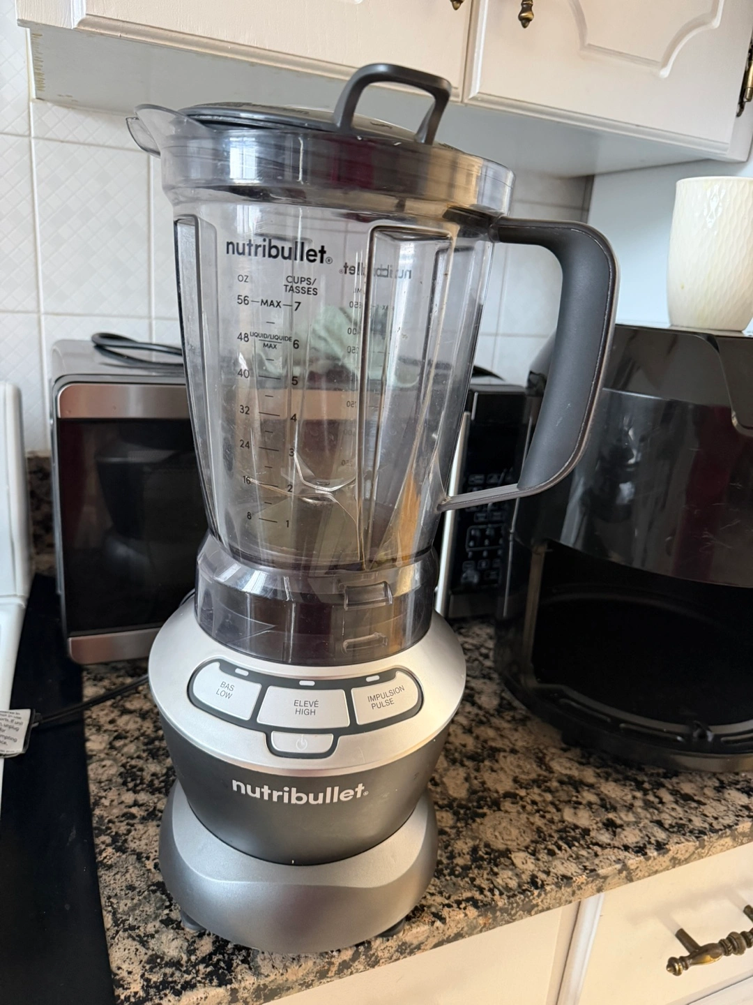 This is a NutriBullet blender. It has settings for bas low, elevé high, and impulsion pulse. The pitcher measures up to 56 oz or 7 cups. It's useful for making smoothies and other blended drinks. Can blend ice, beans and other stronger food and nuts smoothly.