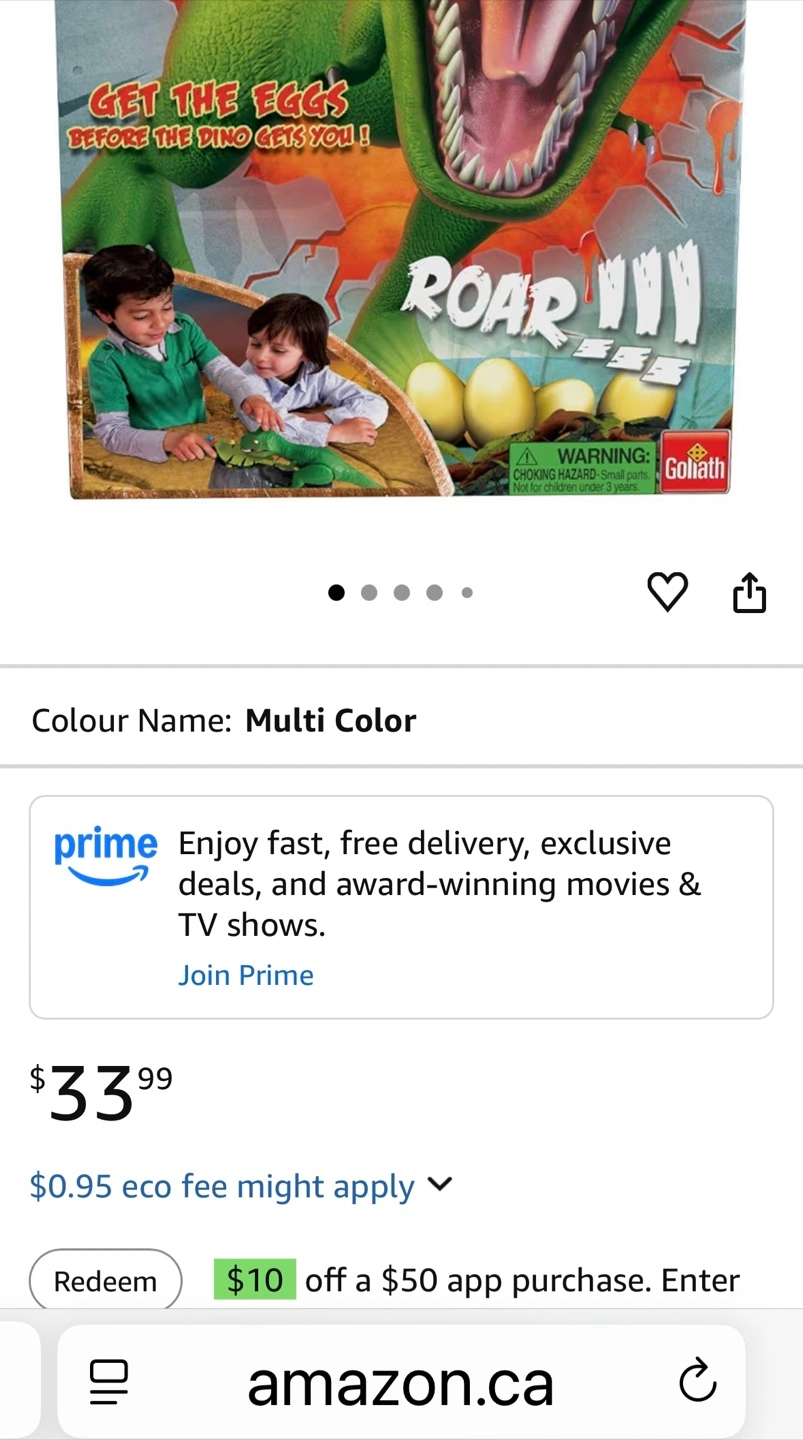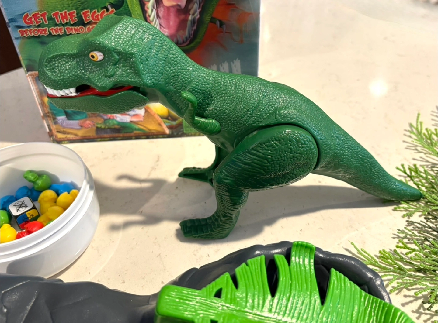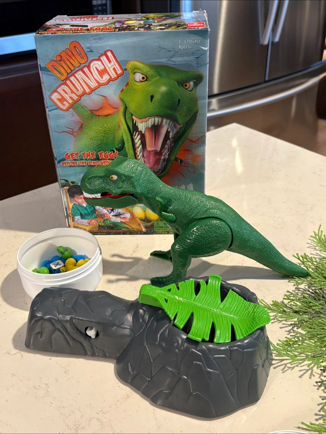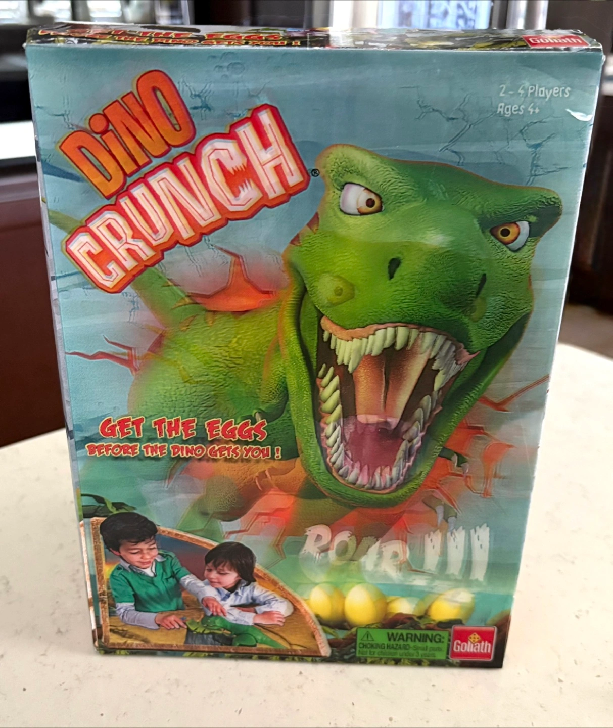 Dino Crunch is a thrilling board game for 2-4 players. Get the eggs before the dino gets you! It's for ages 4 and up. Includes the game, dice, and dino figure.