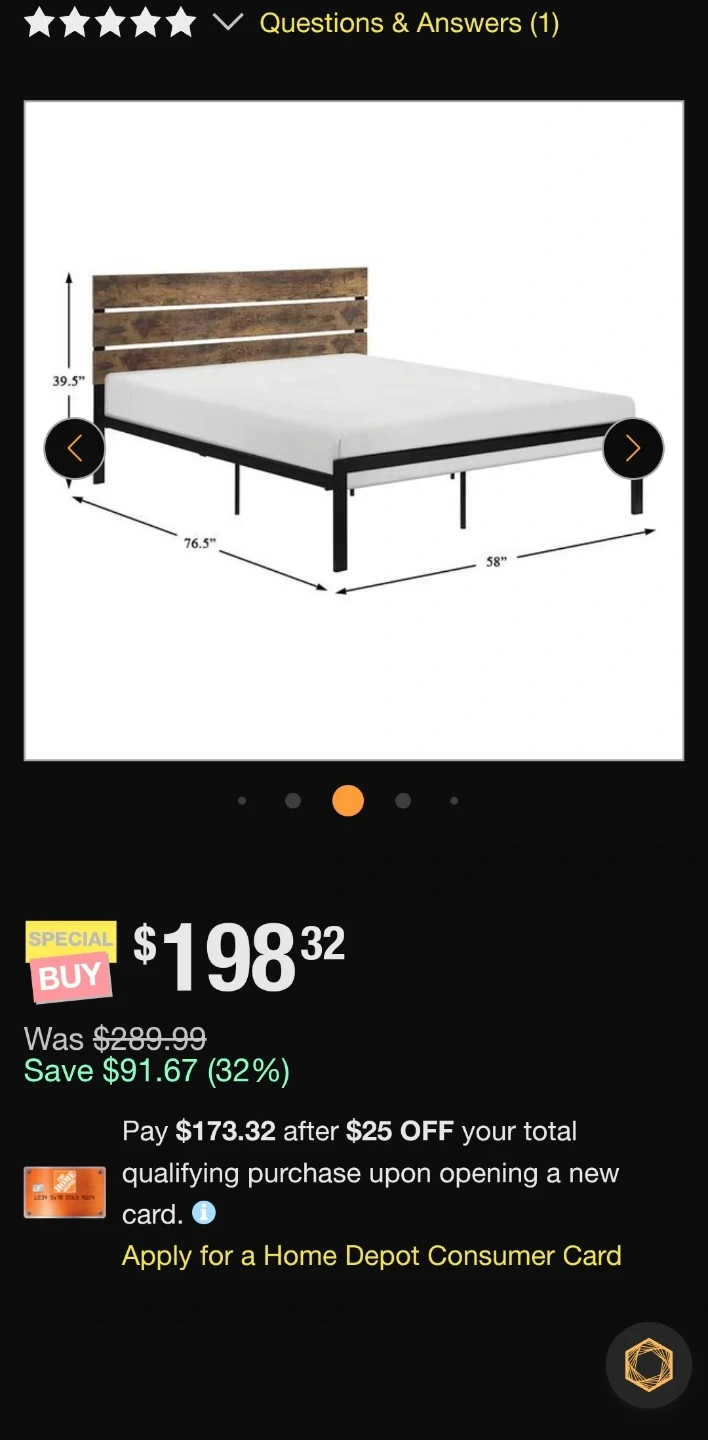 Selling a brand new Lazzara Basseri Black Metal Frame Full Platform Bed! It's still in the box and ready for assembly. The dimensions are approximately 76.3" x 58" with a headboard height of 39.5". Originally bought for $198.32