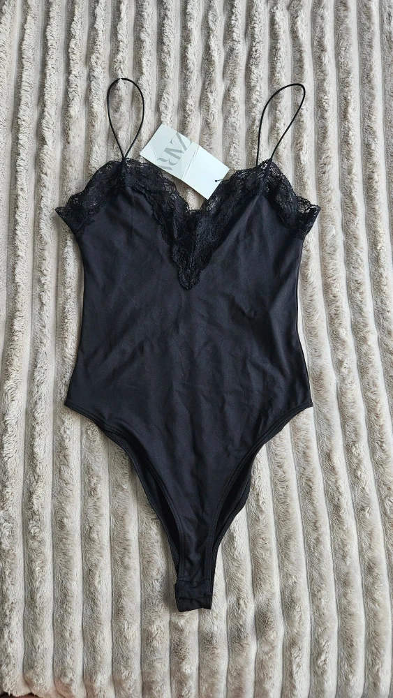 Selling a brand new Zara black bodysuit with delicate lace detailing! It's a size small and has adjustable straps. Perfect for layering or wearing on its own. Never worn and still has the tags attached