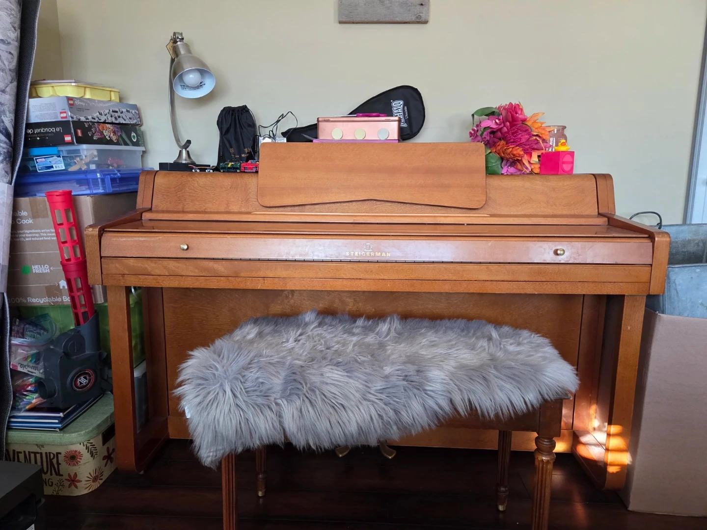 Free upright acoustic piano by Steigerman. In good condition and has been well cared for. Great for beginners, students, or anyone looking for a real acoustic piano.