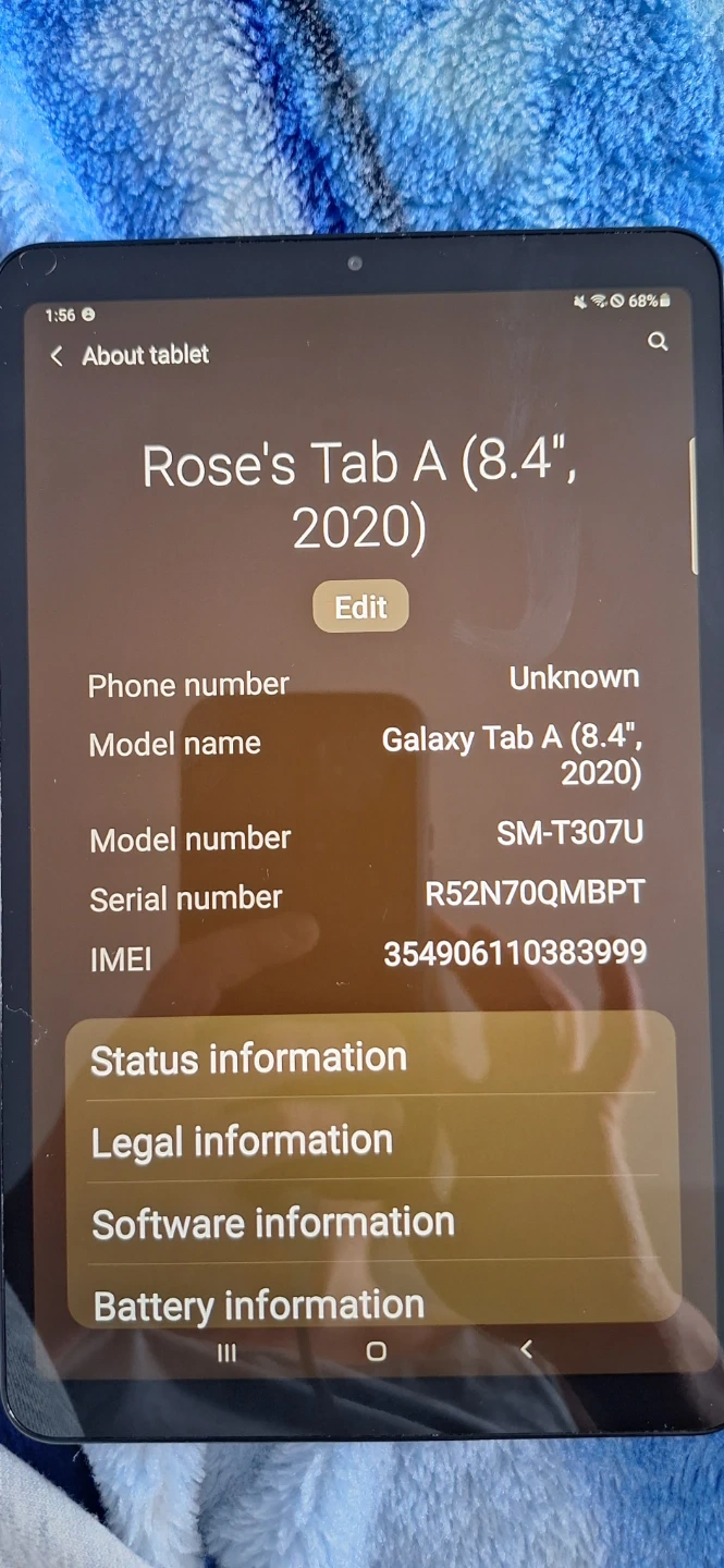 Samsung Galaxy Tab A (8.4", 2020) tablet. Model SM-T307U. This tablet is in great condition and ready for a new owner. It's perfect for browsing the web or watching videos!