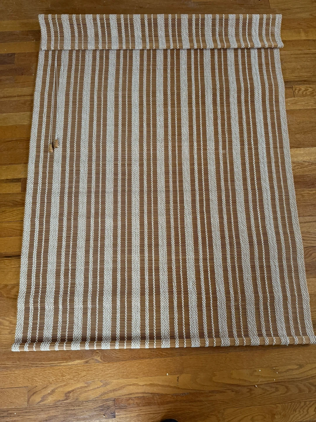 Selling a gently used bamboo window shade in brown and beige. It's in great condition and would be a nice addition to any room!