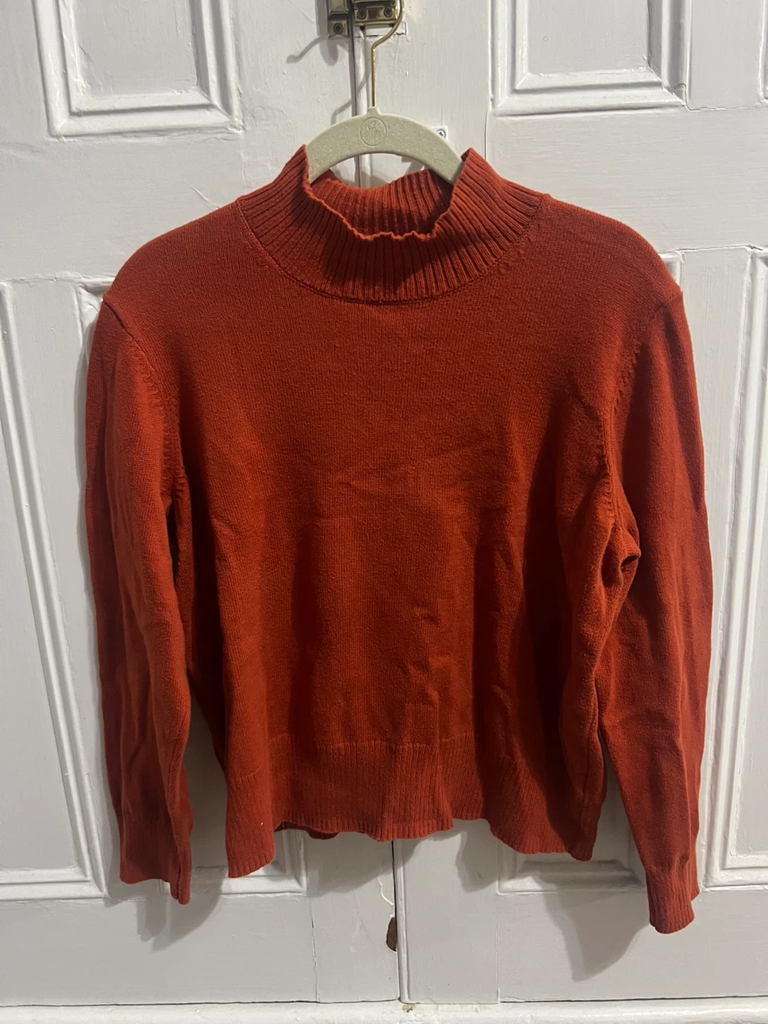 Orange mock neck sweater from Old Navy. Size M Petite. Made of 100% cotton. Machine wash cold gentle cycle, wash inside out, only non-chlorine bleach when needed, dry flat, warm iron. So soft and cozy!