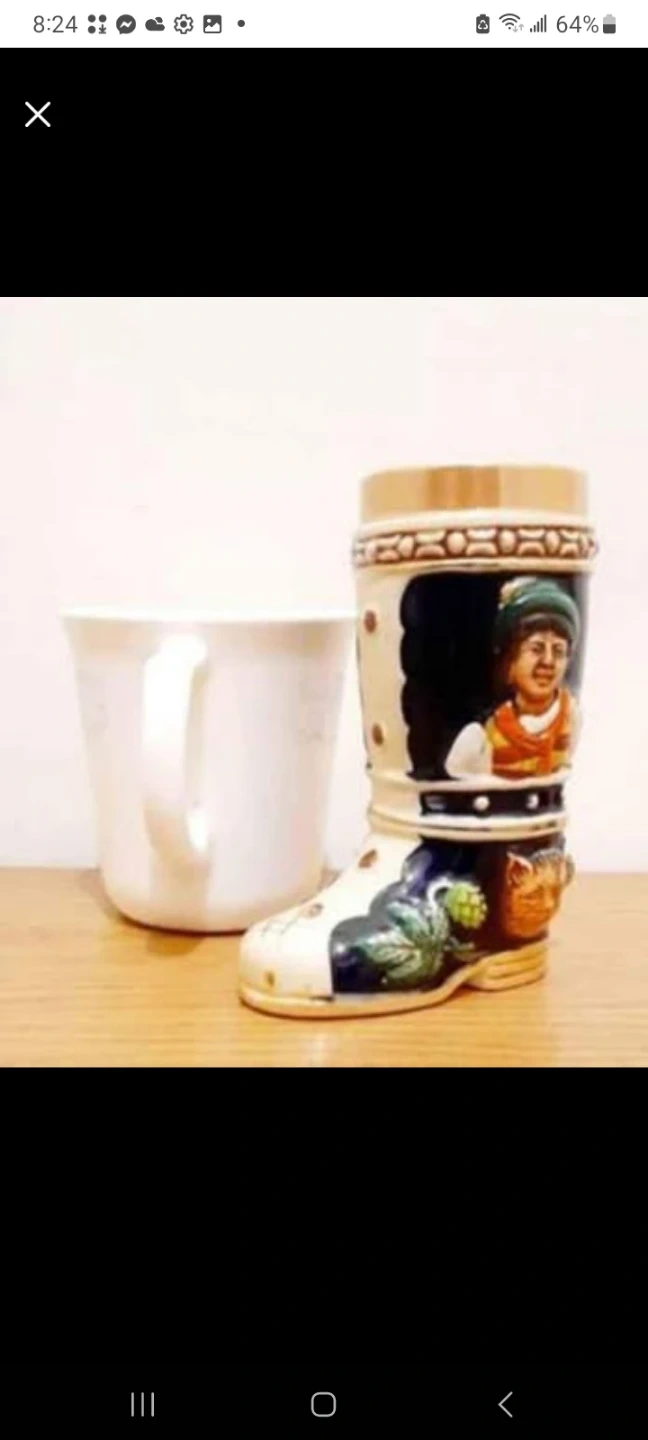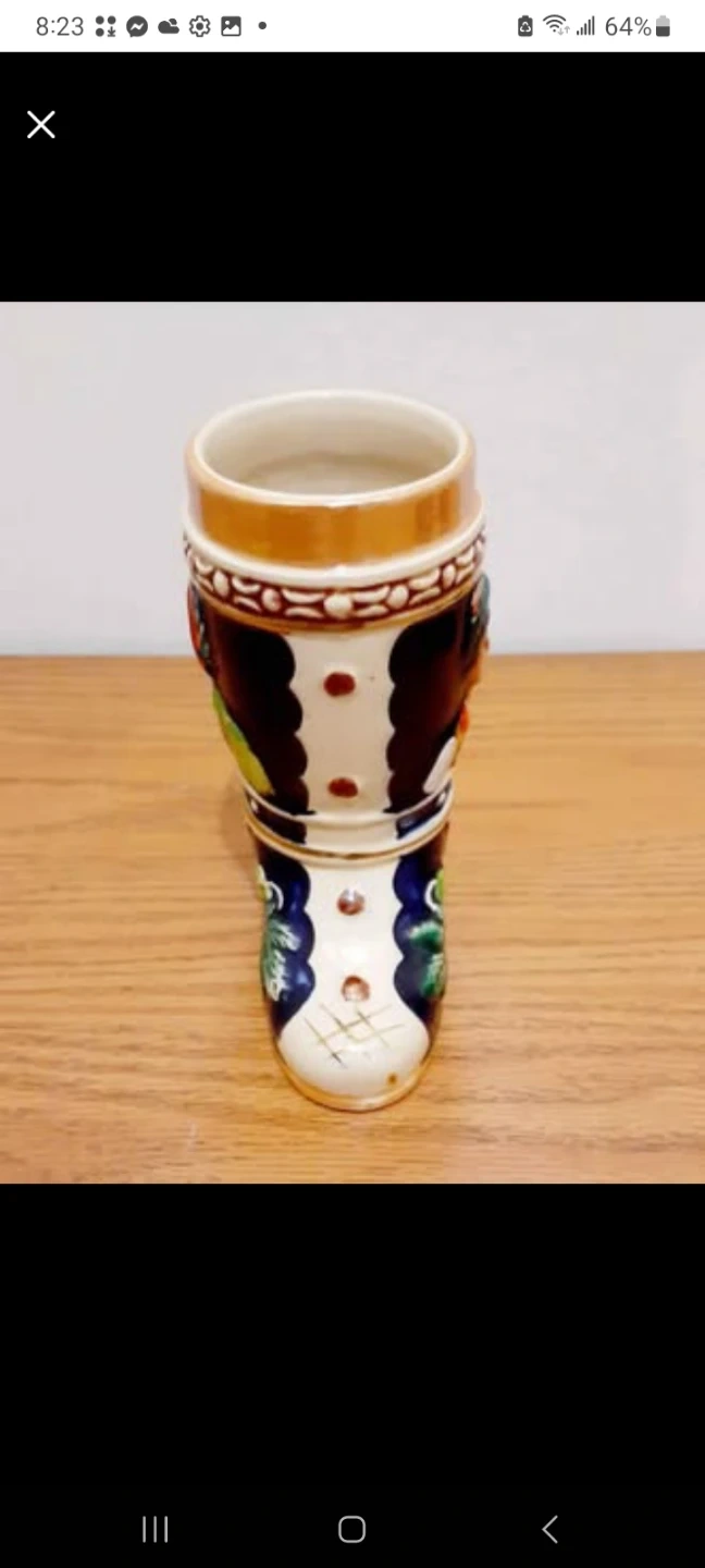 Vintage, West German Goebel Hand Painted ceramic boot beer stein.